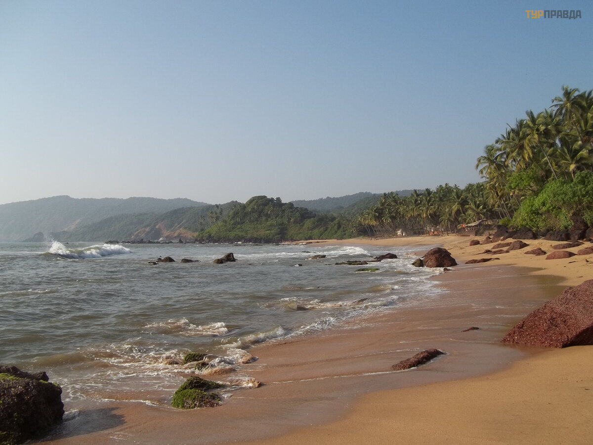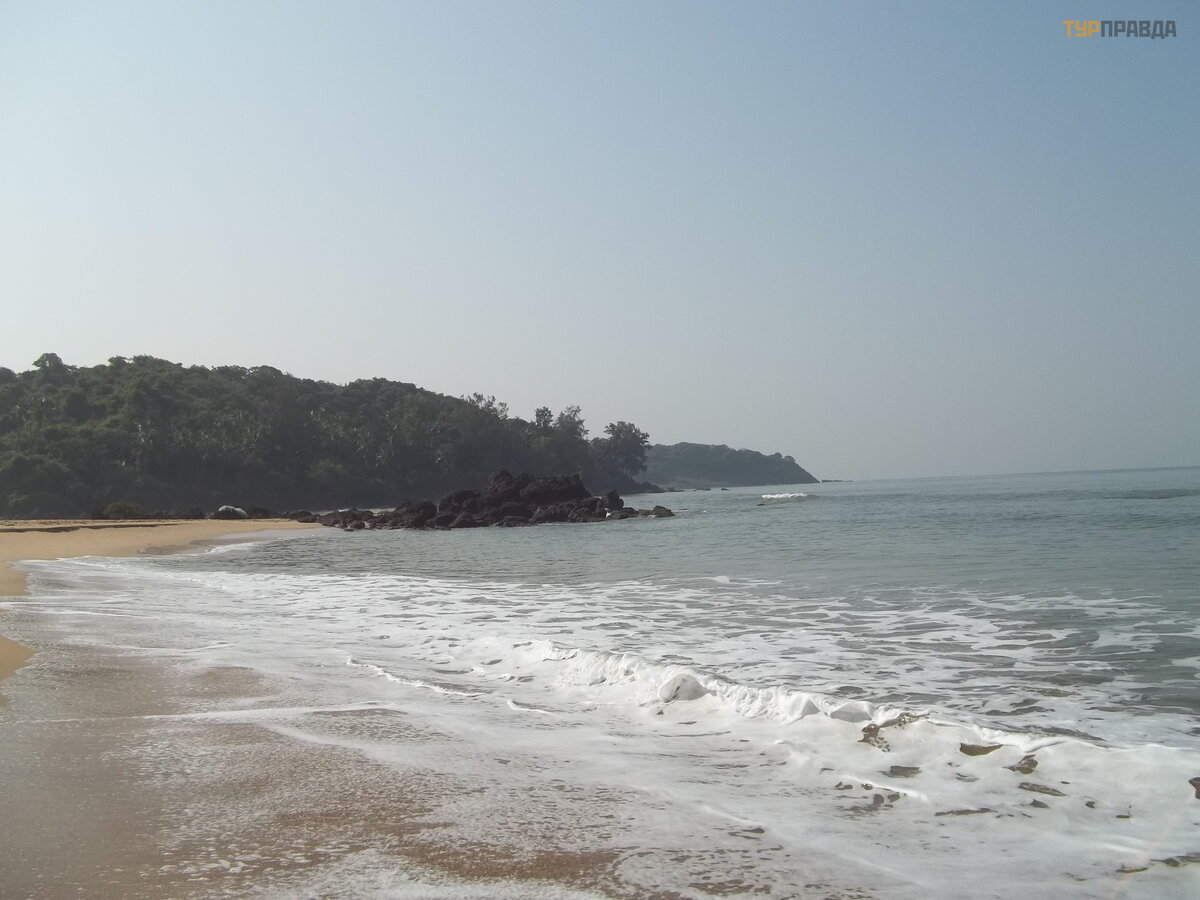 Riding the bus to Chaudi, we noticed that the sign on his windshield says Cola-Agonda-Canacona-Guljbag-…and something else. And Guljbag is also a beach, further south. Today we decided to go there. But first you need to drink tea. The boiler made pffff, and the room stank of burning insulation! Everything is lost! Goodbye shrimp! But there is nothing to do. After eating a piece of pineapple, we went to the bus, which passes the stop at half past eight. ABOUT! And let's buy milk on the way! Verka refused. She didn't want to experiment anymore. Almost reaching the dairy, I discovered that I forgot to take an empty bottle. And I want some milk! I sent Vadik back (back and forth about 2 kilometers), I would run away myself, but my flip-flops rubbed between my fingers. While we were waiting for him, we watched a movie. A moat was dug near the vegetable shop. One cow sat in it, as if in ambush. The second made attempts to go to the store and shave something. She was ruthlessly expelled. I went to see if Vadik was coming. When she returned, Verka told me with a laugh that the cow had found a bag with some kind of vegetable tied to a parked motorbike, and having ripped it open, managed to gobble up a few pieces. The owner who came running from the shop, whom Verka called, again drove away the poor hungry cow.