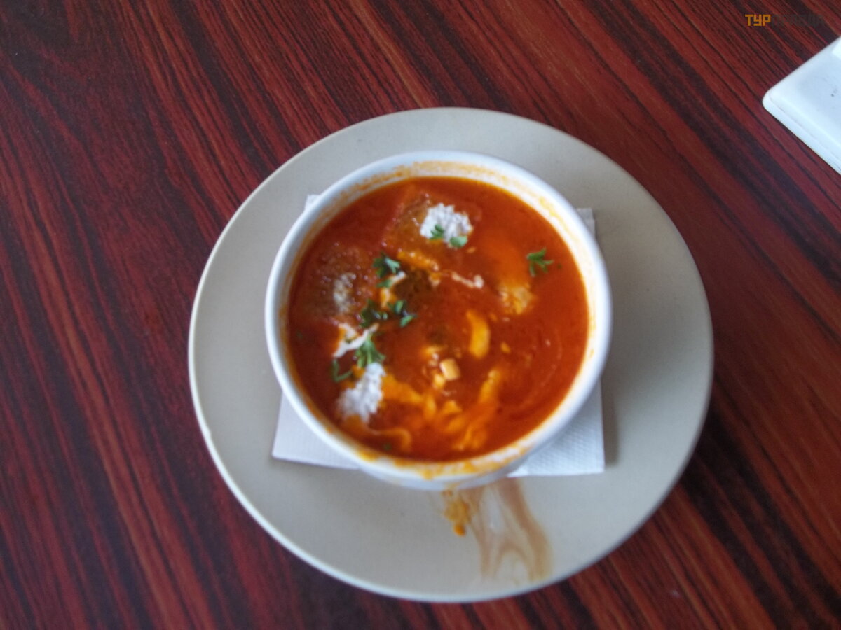 Passing Putnam and Colomb again, we came to Palolem. We swam and went to dinner at a former restaurant. The boy who served us last time was not there. But the other guy spoke a little Russian. He offered to see the fish, saying that they had flounder. Well, bring it! Brought. The fish was the size of a small plate, flat, but never a flounder. He will tell me about the flounder! And this happiness cost 350 rupees. Then he allegedly offered me a mullet. It did not look like a mullet at all, although I read that it is found here. In short, we rejected the fish and ordered Indian dishes again. Tomato soup, naan garlik garlic flatbread, malai kofta potato balls, dal lentil stew, and more.