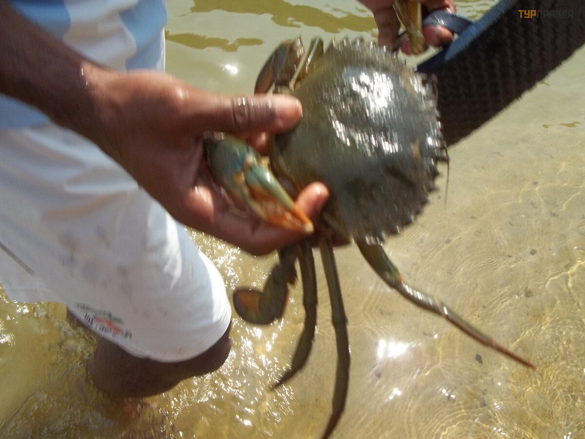 I didn't lie down even five minutes when I heard excited exclamations. Indian boys, standing knee-deep in the river, were chasing someone. A white man with a camera came up and started filming. I went too. The boys caught a hefty crab.