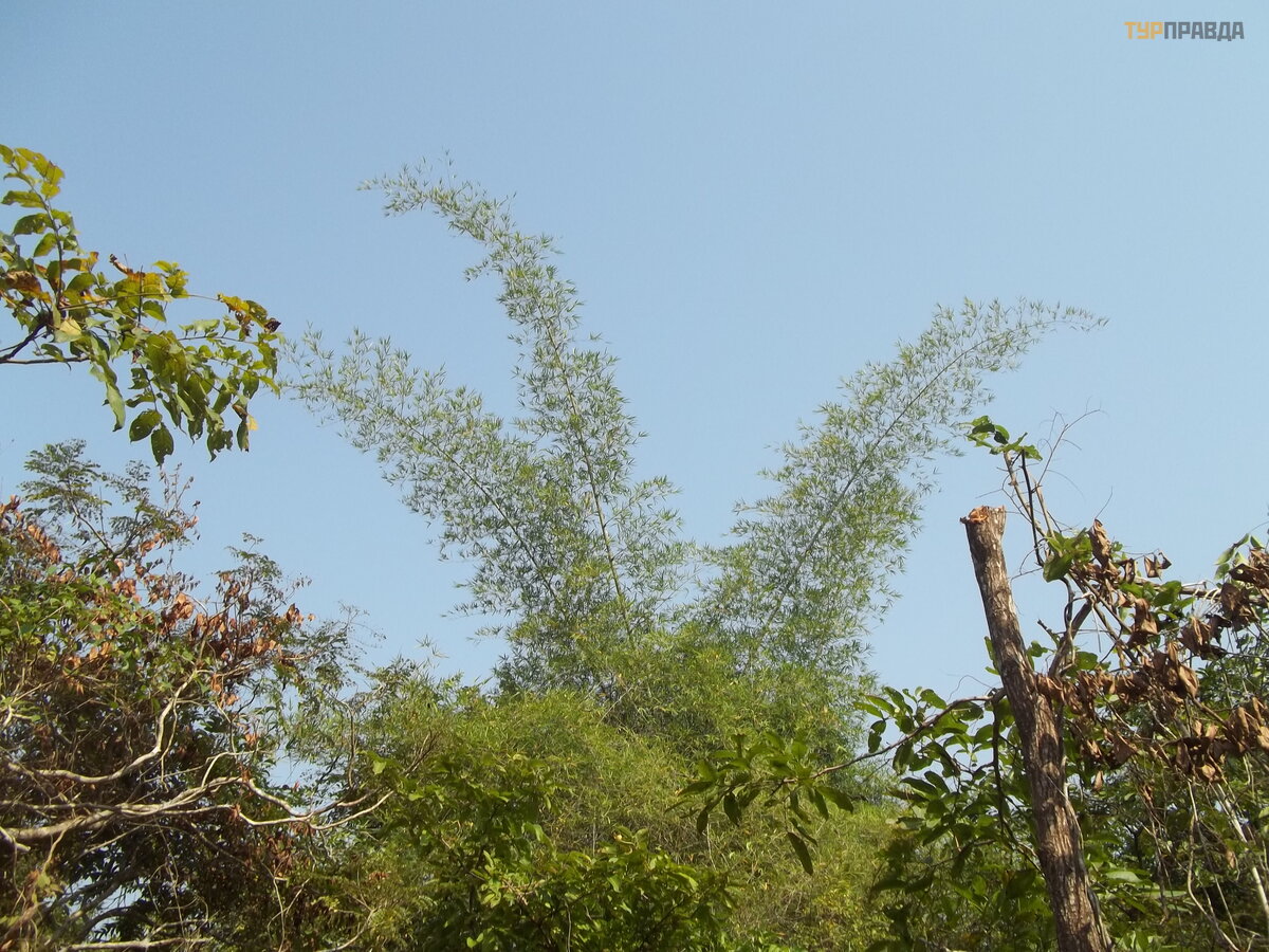 Let's go along the road to the left. Here the street with shops quickly ended and private houses went. Many rented guesthouses, with contact numbers on the gate. I took a few of them just in case. Might be useful to someone. Popetlyav, went to the dirt red road. When the houses were over, I heard some kind of rumble in the tree. Monkey! Big! I have never seen monkeys in the wild before. Well, only on the SHL on the way to Nuwara Eliya in a glimpse from afar. I grabbed the camera, but she galloped along the branches somewhere in the thicket. We reached a fork and turned towards the sea. The jungle was all around us. Some unfamiliar sounds - hooting, whistling, rustling. They scared away some large chicken birds, such as bustards. Nature! And bamboo grows there in a completely different way than in the Nikitsky Botanical Garden. Not in separate trunks that form a grove, but in bunches. And the trunks here are as thick as the arm of a healthy man. Ten meters high with panicles at the end.