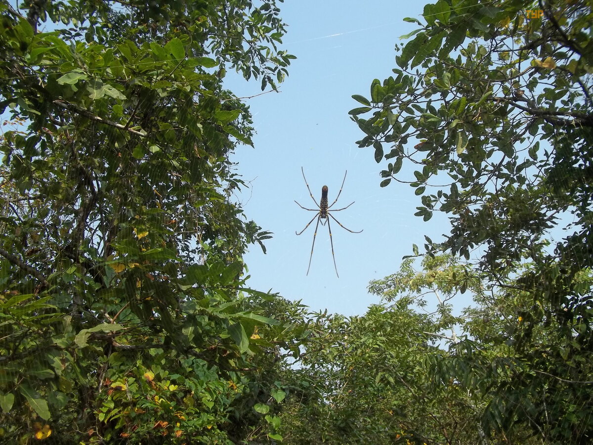But no one followed us. And then some greenhouses went. We vaguely remembered that we had seen something similar on the map, and the path should lead us to Butterfly Beach. I walked looking at the trees, hoping to see monkeys. Very often there were such spiders hanging over the road in their web.