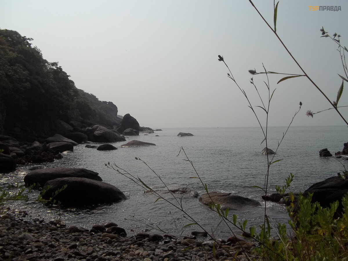Going ashore, we realized that this is the same beach, we just got to it by a different road. But today there were absolutely no waves, and you could swim safely. However, the depth gain was instantaneous. A meter from the shore was already with a head. Therefore, Verka did not climb here, but was content with a fresh lake. Refreshed, we all went together to the far end of the beach in order to find a path to another Kola.