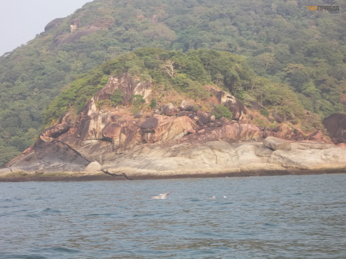 They (guys) agreed. I dived from the side and began to swim in the direction where I had seen dolphins before. But they did not want to swim close to me. Once, a dolphin's head just popped out of the water, wondering what kind of crocodile was swimming here? After chasing after them for a bit, I climbed back into the boat, almost pulling the guy who was dragging me into the water. Sailed further. We did not want to land on Moonlight Beach - there were a lot of people who landed from boats.