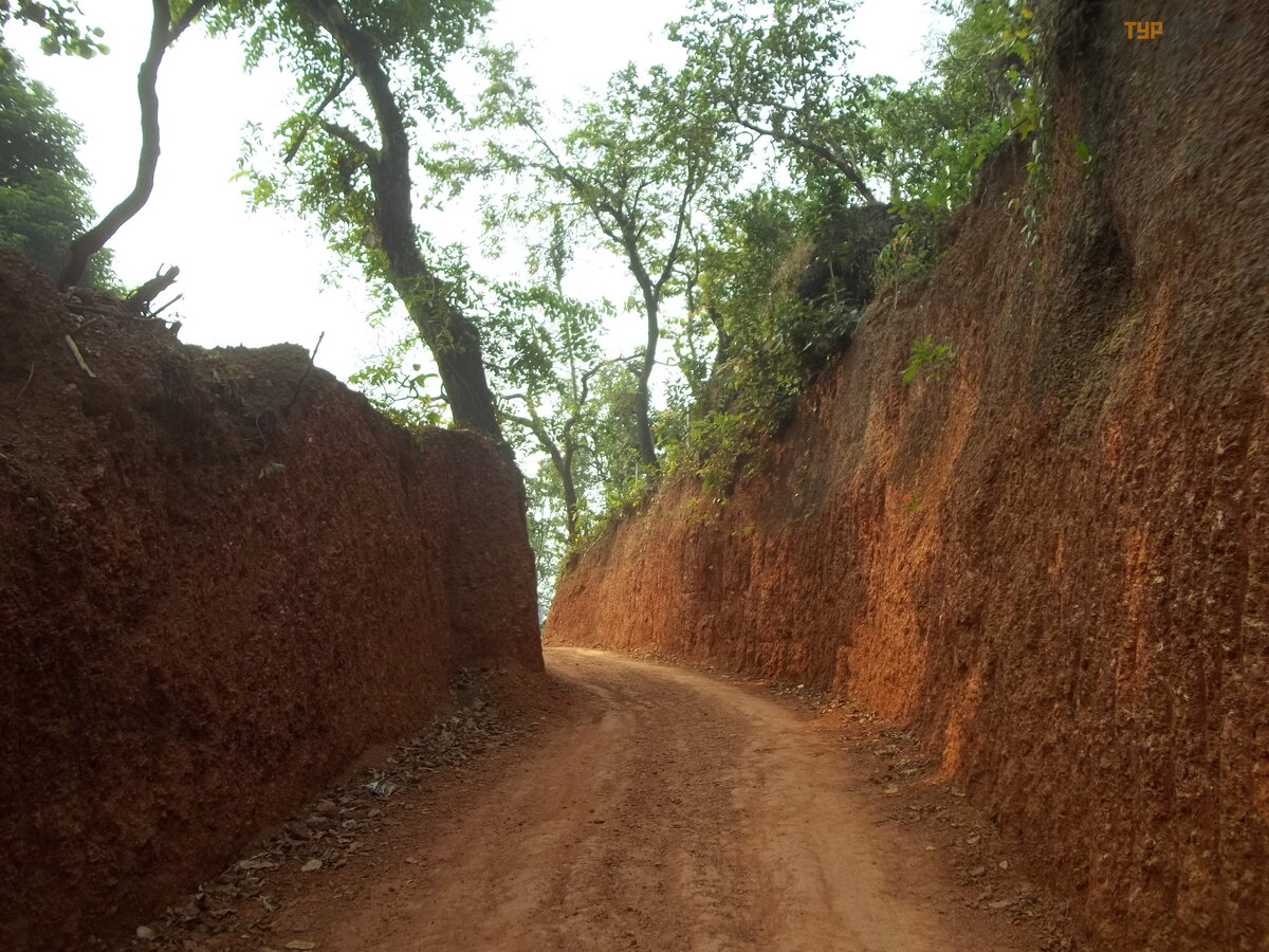 After dropping us off at the crossroads and showing us where the road leading to the beach begins, the conductor sped away with the bus. We went along the red road, dug, as it seemed, in the slope.