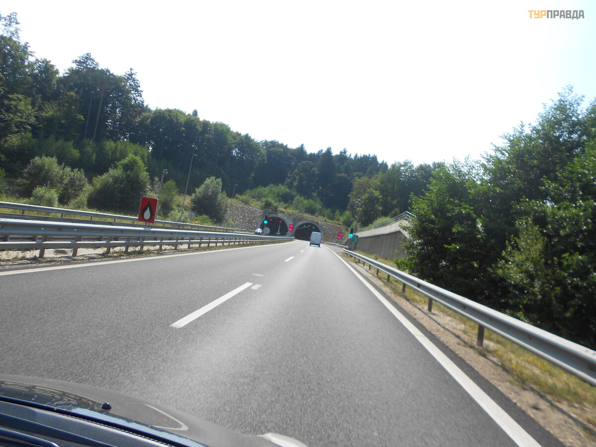 The border with Slovenia flashed by unnoticed. At the gas station we stop to buy a vignette to pay the roads and fill up with fuel. The navigator leads to a detour of Ljubljana, which allows you not to waste time on the road, but the landscapes outside the window are depressingly monotonous. But soon the mountains appear, the road becomes more picturesque, passes through many tunnels.