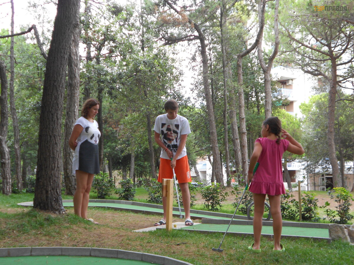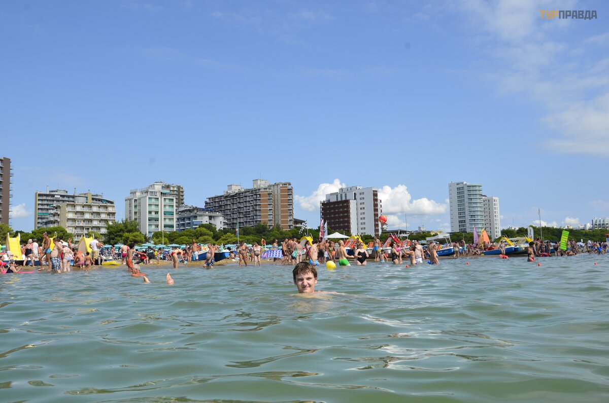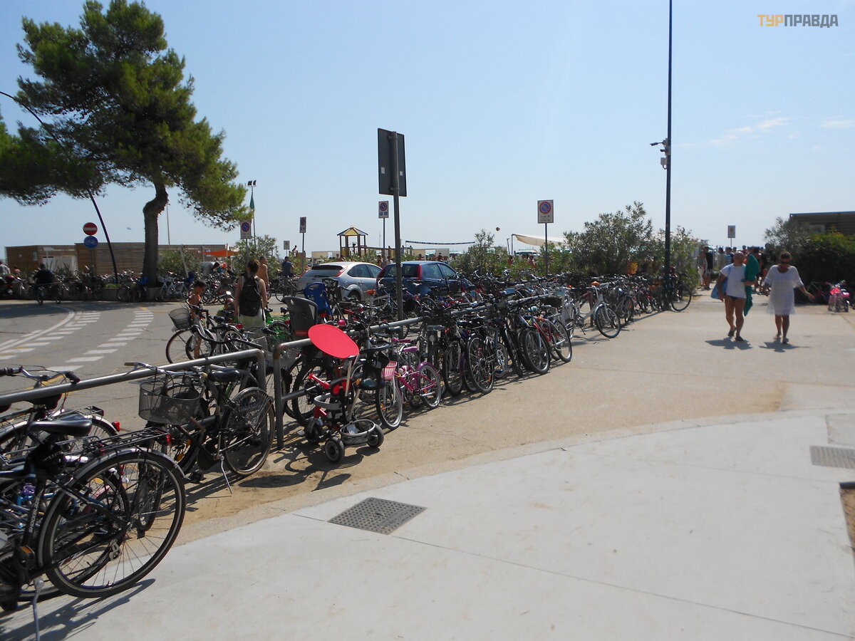 On the territory there are two large pools and one for the smallest, a slide, a jacuzzi and fountains. Around the pools there are many sunbeds, and you can also sit on the green lawn. Naturally, the pool is the place where we spent a lot of time during the day, if for some reason we were not at sea. During the day, water aerobics is held in the pool, evening performances, children's animation. The animators did a great job, the show with fire was very memorable, as well as the evening for children, when various competitions were held, all children were given prizes, cotton candy. There is paid wi-fi, bike rental. Lignano is a paradise for cyclists: paths, dedicated lanes, parking lots. There are many cyclists here.