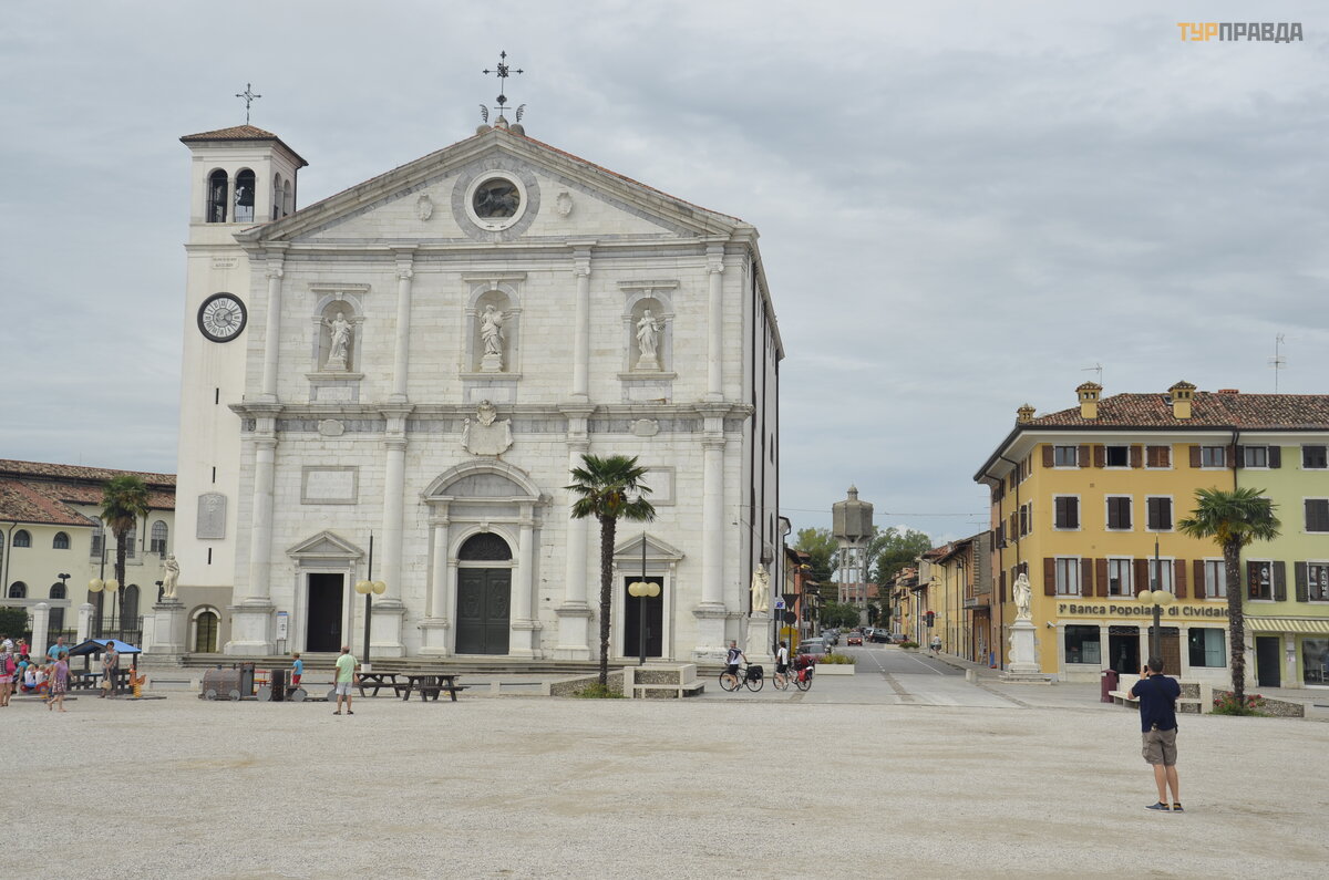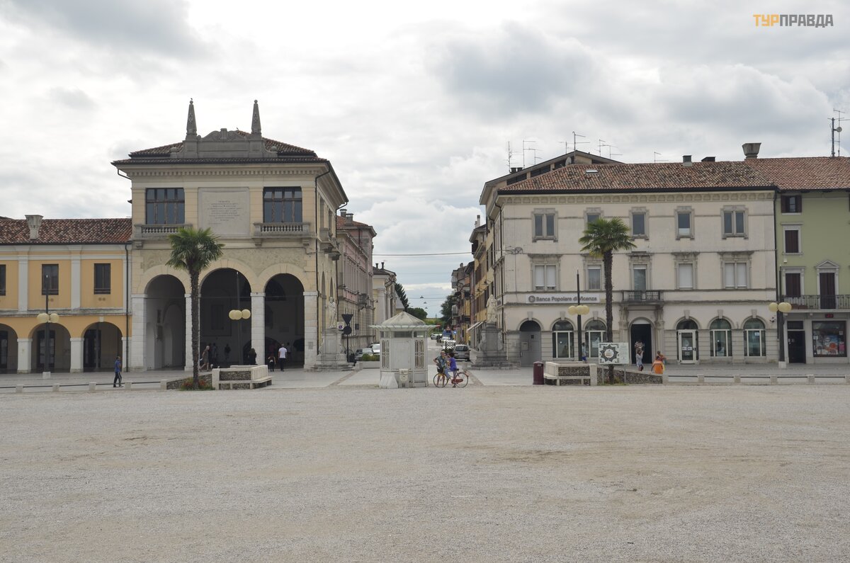Two days were unlucky with the weather. It started raining in the morning. In order not to waste time on the first day, we went to the nearest outlet 20 km away in Palmanova. We drove along local "rural" roads, along fields with corn and grapes. In front of the outlet, I still had to look for a free parking space. There are endless rows of branded stores. No one leaves here without shopping. We are no exception.