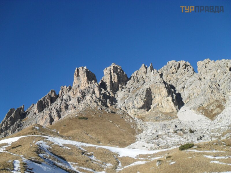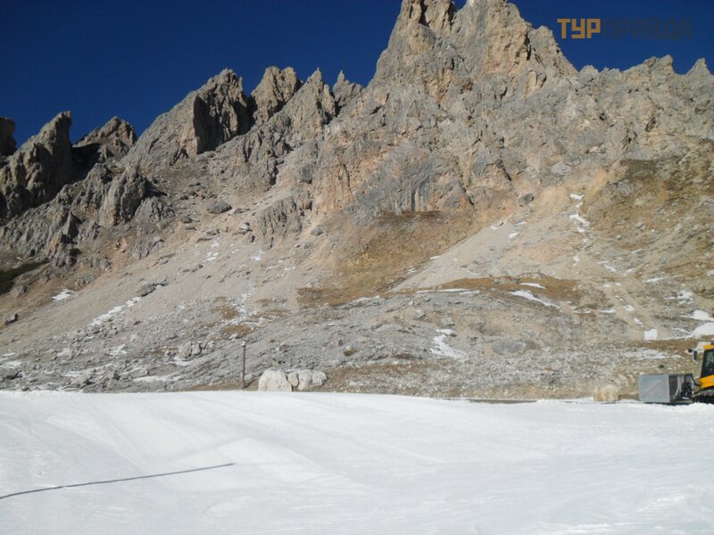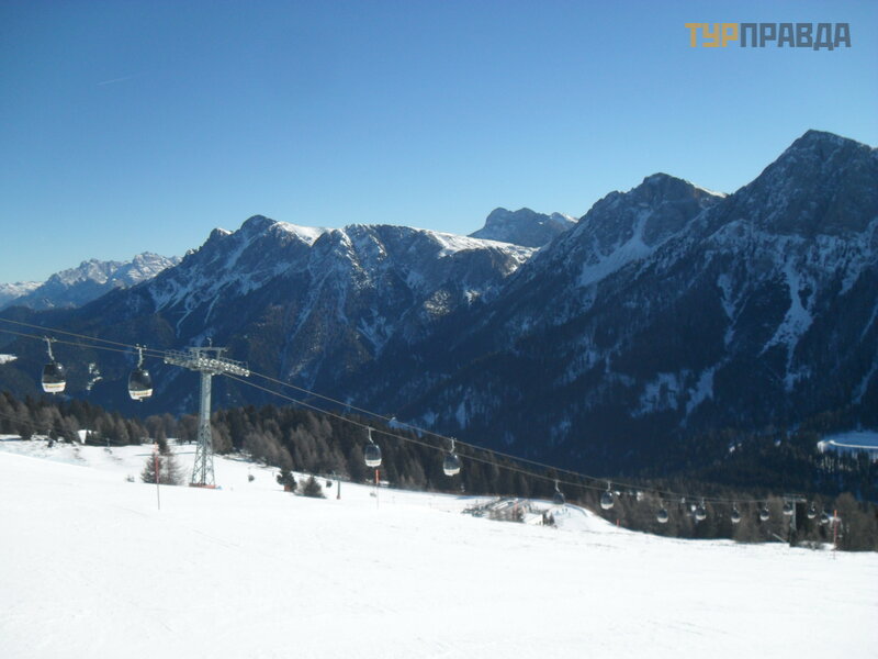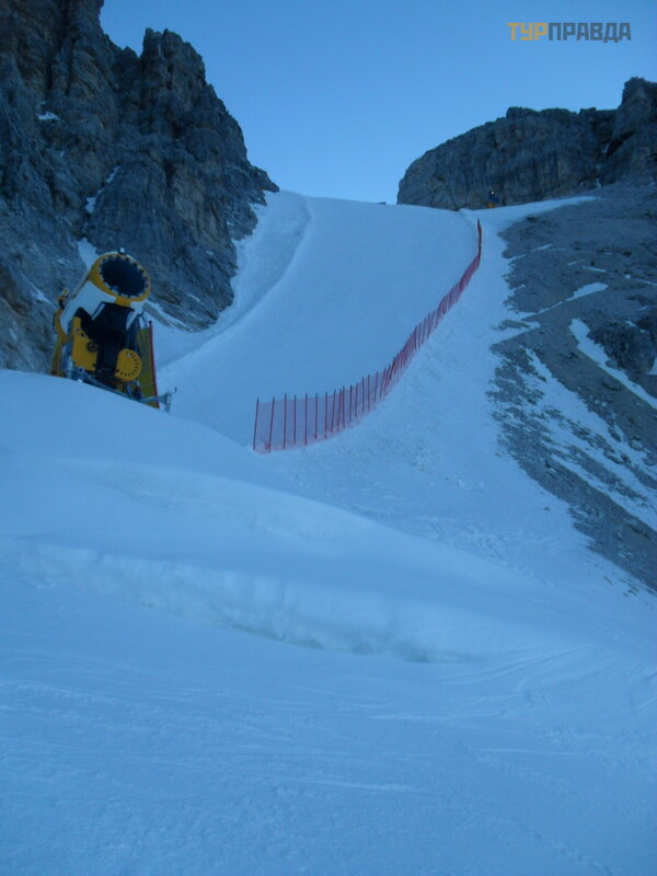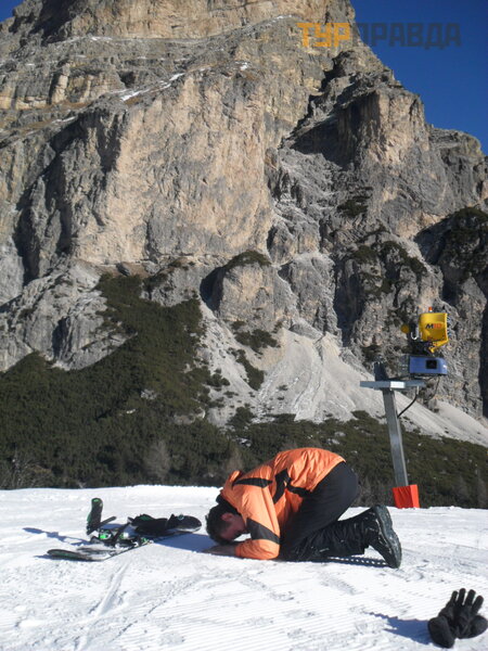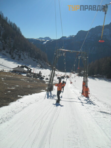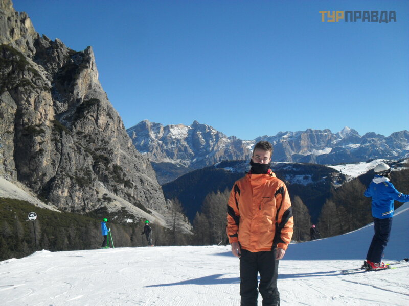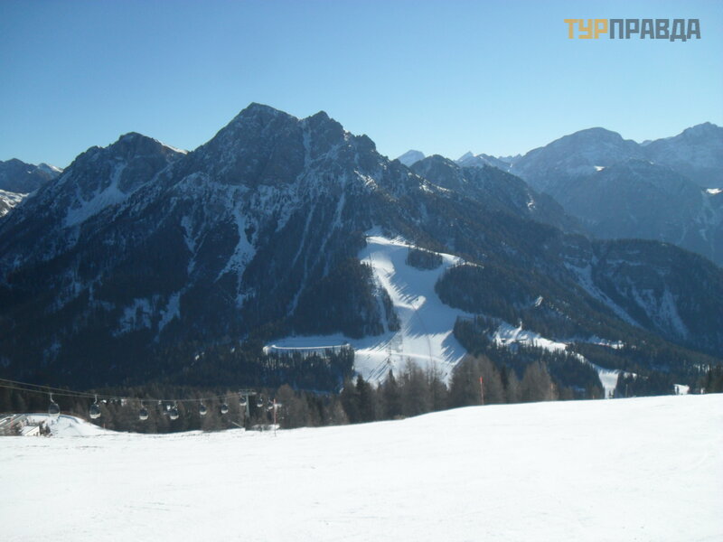We went there on skis, and back we agreed that we would be taken away by bus (25 euros per person). After a little wandering (already in Cortina) skibus, we came across the track "Olympia" (area Tofana - Pomedas), but it was closed before the World Cup and there, unfortunately, no one was allowed. were.