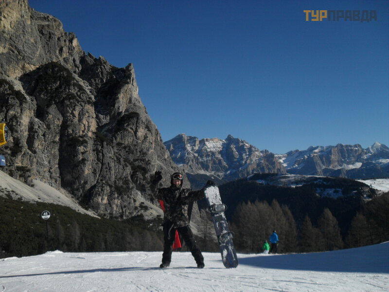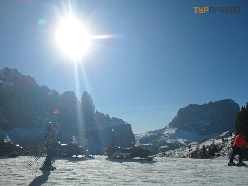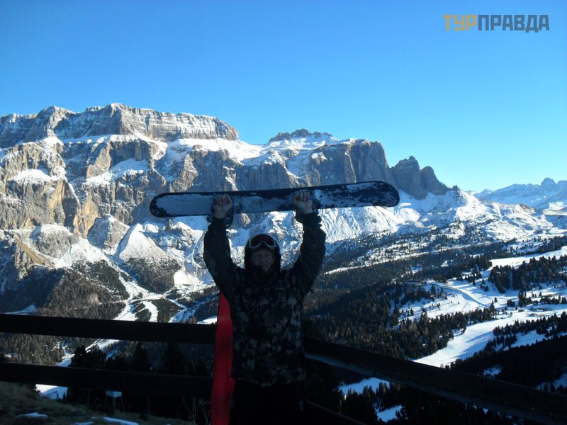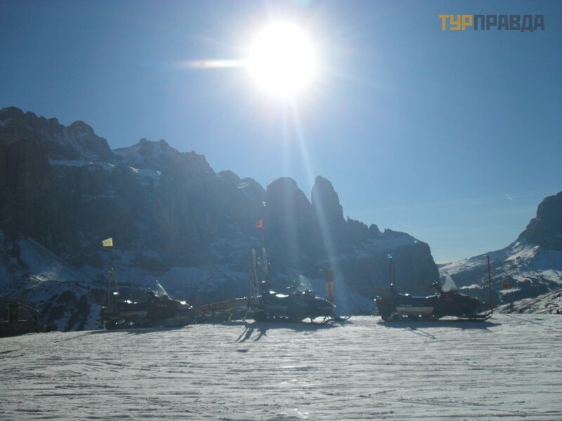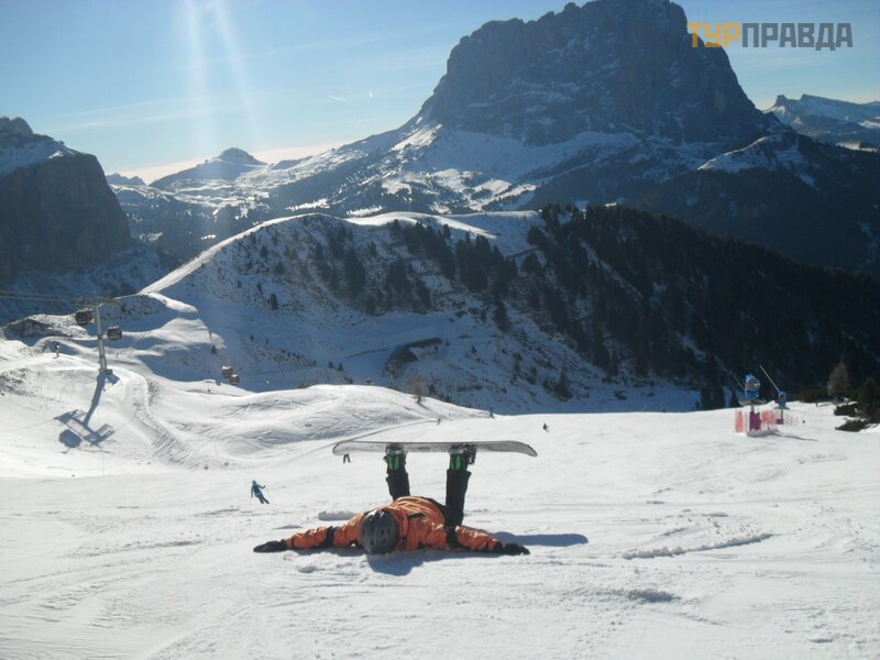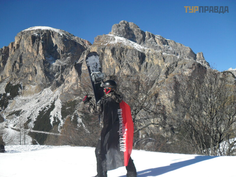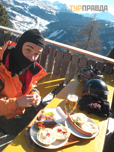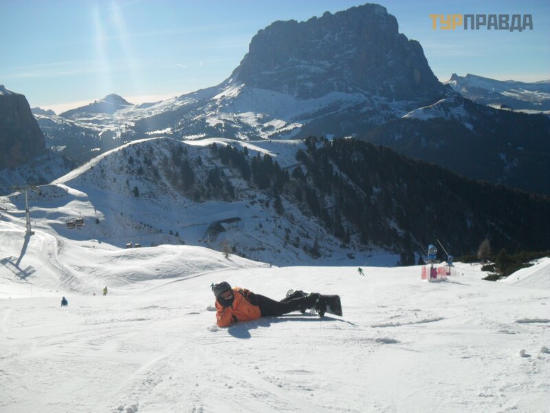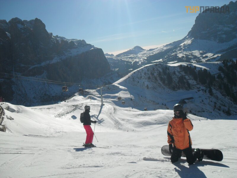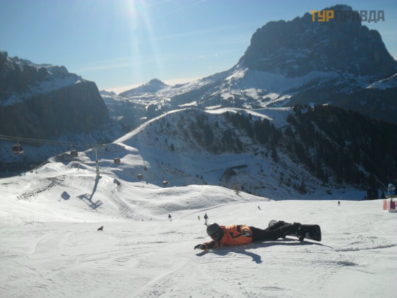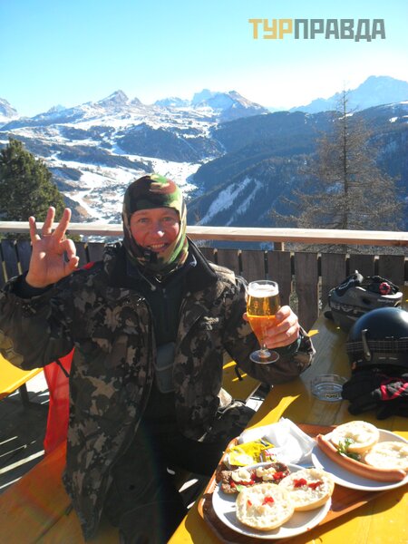Day 4: Day of rest - went to Corvara (Alta - Badia), jumped from the springboards near the snow park near Arabi, then sat in a cafe - competed / drank beer. Then we went to the Grand Reese (it just passed the Audi Cup) and there made a couple of descents, went in the opposite direction - home ...along the way to Valon (panorama and slopes were great)