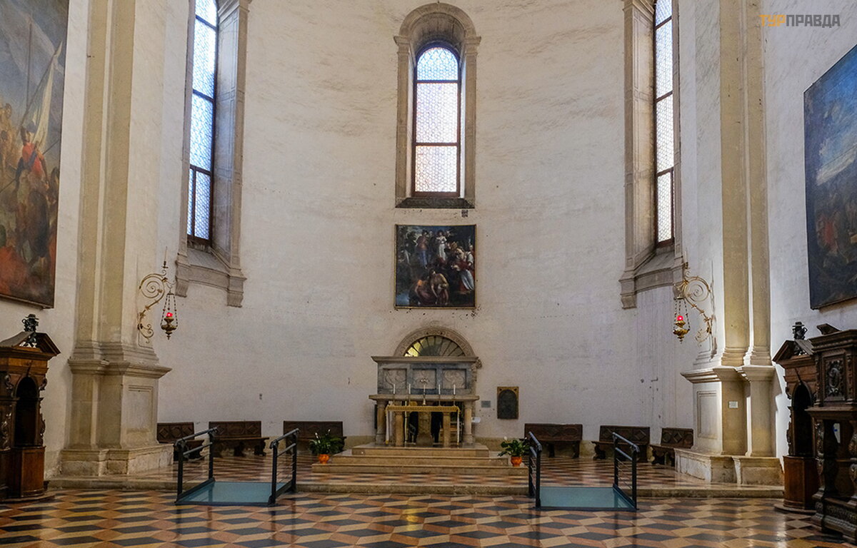 Above the tomb of St. Giustina (Justina) there is an altar, and above it is Veronese's painting "The Martyrdom of St. Giustina".
