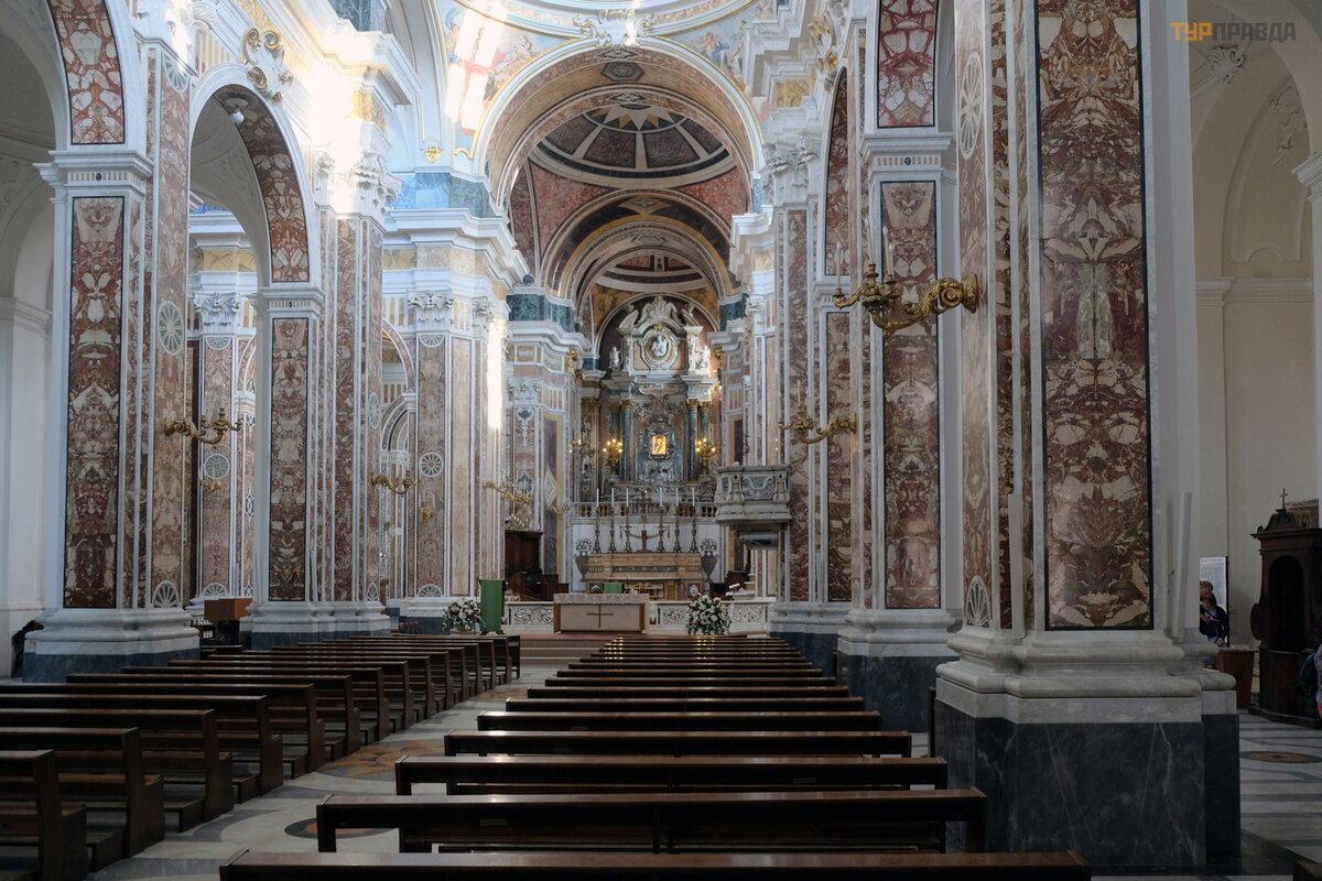 The interior of the cathedral is from the 18th century, entirely in the Baroque style, unfortunately, nothing remains of the original 12th century.