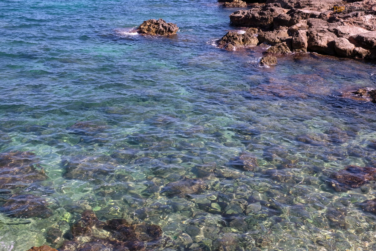 A very popular place is a city beach between two rocks with a stream, through the bed of which an ancient Roman aqueduct bridge is thrown. Usually the beach is full of people, but it was already evening and there were very few people.
