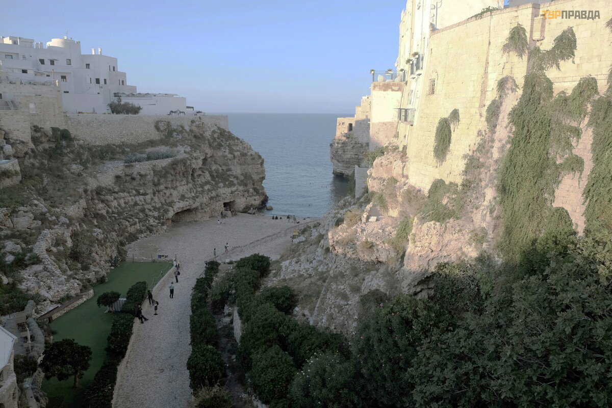 There are only 17 thousand inhabitants in all of Polignano, and therefore the historical center is generally tiny. We're heading there.