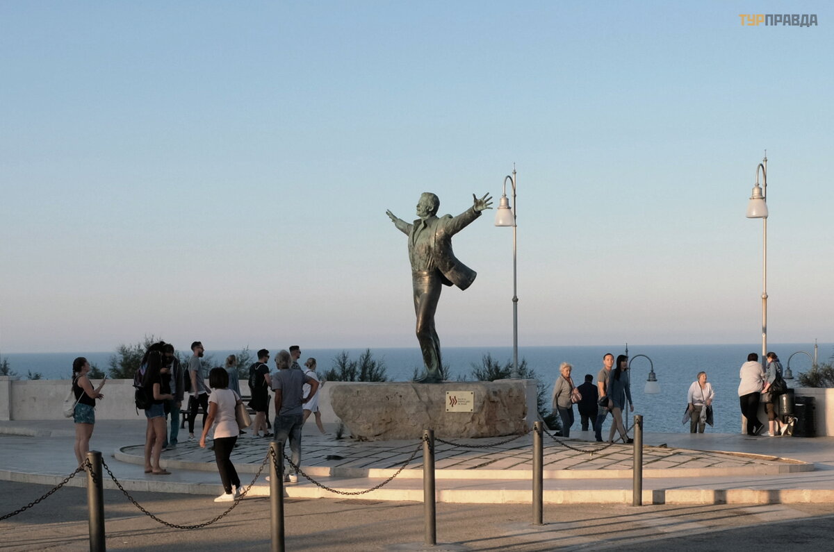 On the embankment there is a monument to the famous fellow countryman, singer Domenico Modugno, who sings the most famous song Volare - to fly.