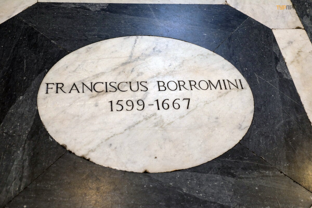 The brilliant architect Francesco Borromini is buried in the church,