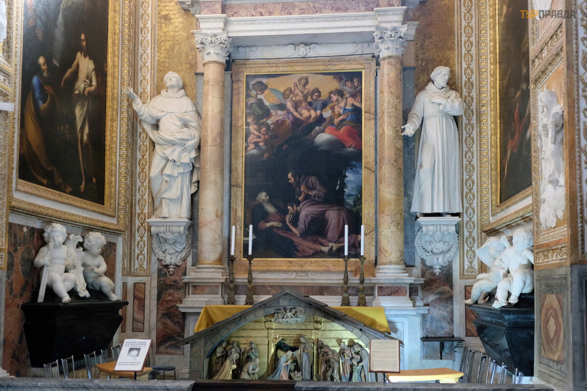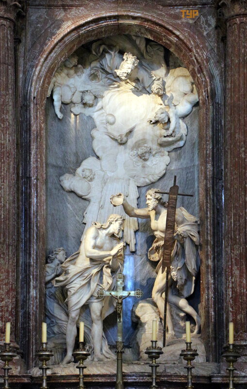 And this altar is his last work, the sculptural group was made by Antonio Raggi, the author of many sculptures designed by Bernini (for example, "Danube" in the "Fountain of the Four Rivers"):