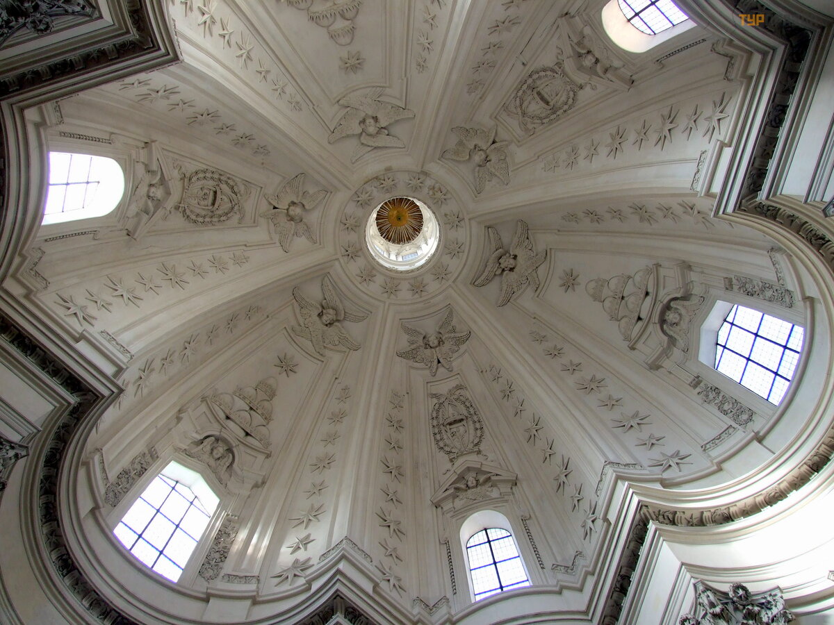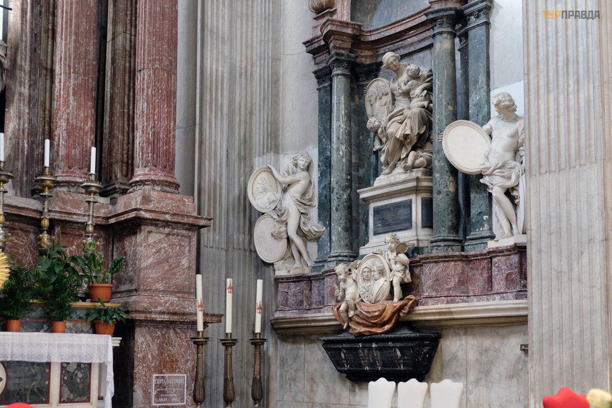 The church was created in the 16th-17th centuries by outstanding masters: Sansovino, della Porta, Sangallo Jr. , Galilei and Carlo Moderno, Lanfranco.