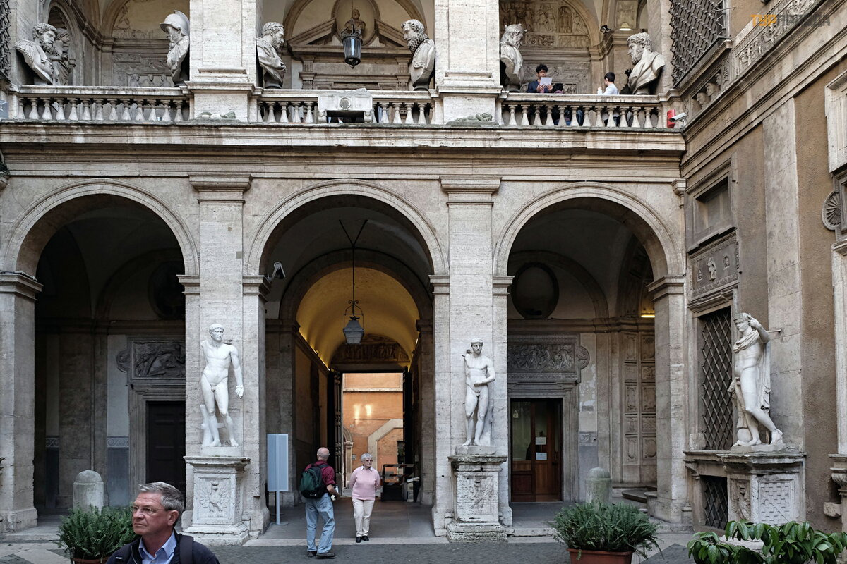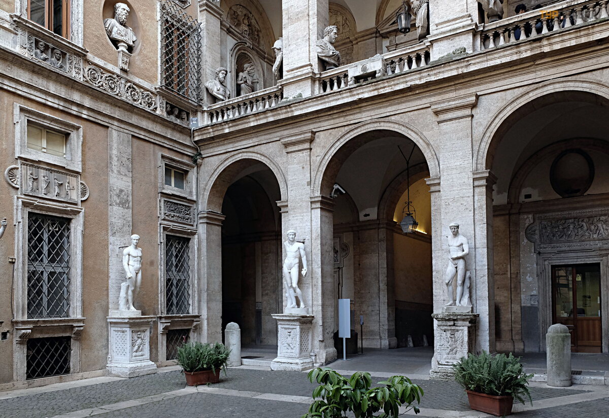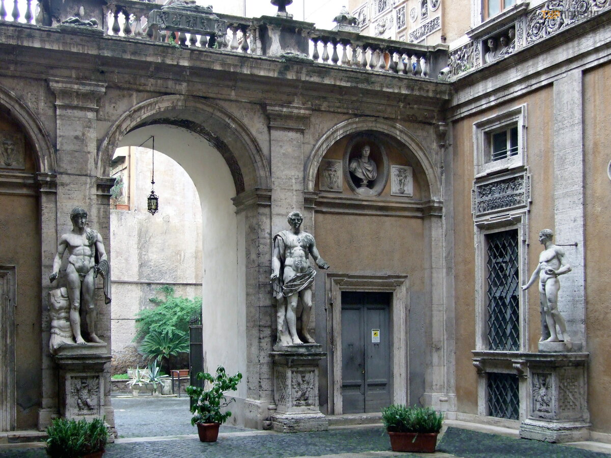 The jewel of the city is the courtyard of the Palazzo Mattei, a kind of open-air museum. Entrance there is free. All the sculptural treasures are placed on the walls, and many of the reliefs are framed by carved frames made for them. On the second floor there is a loggia. The Mattei Collection is the richest private collection of marble art.