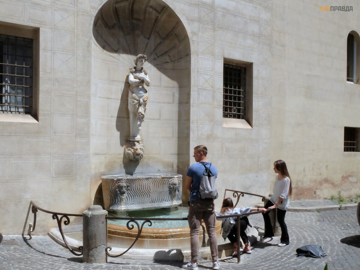 Previously, there were four more dolphins on top of the fountain, but then, due to poor water pressure, they were repeatedly moved. Now they decorate the fountain on Colonna Square. But the author of the turtles, which have now replaced the dolphins, is unknown, they make different assumptions (including Bernini). Turtles have been kidnapped several times,