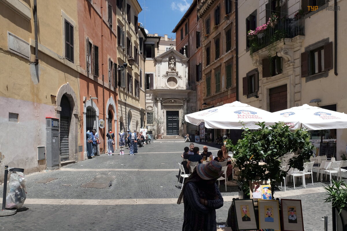 If you turn from the "Fountain of the Four Rivers" into a lane, you can go to the church of the French community of San Luigi Francheisi, but I will tell about this in the next story.