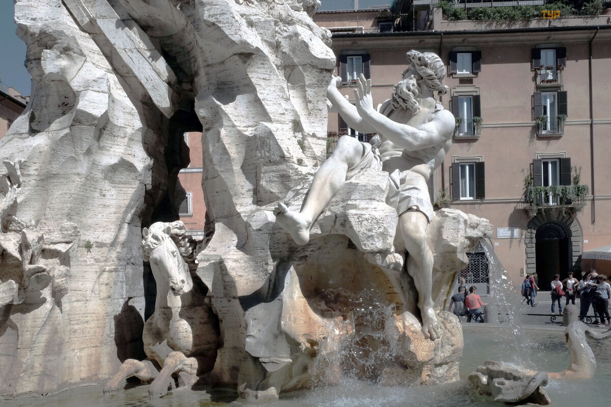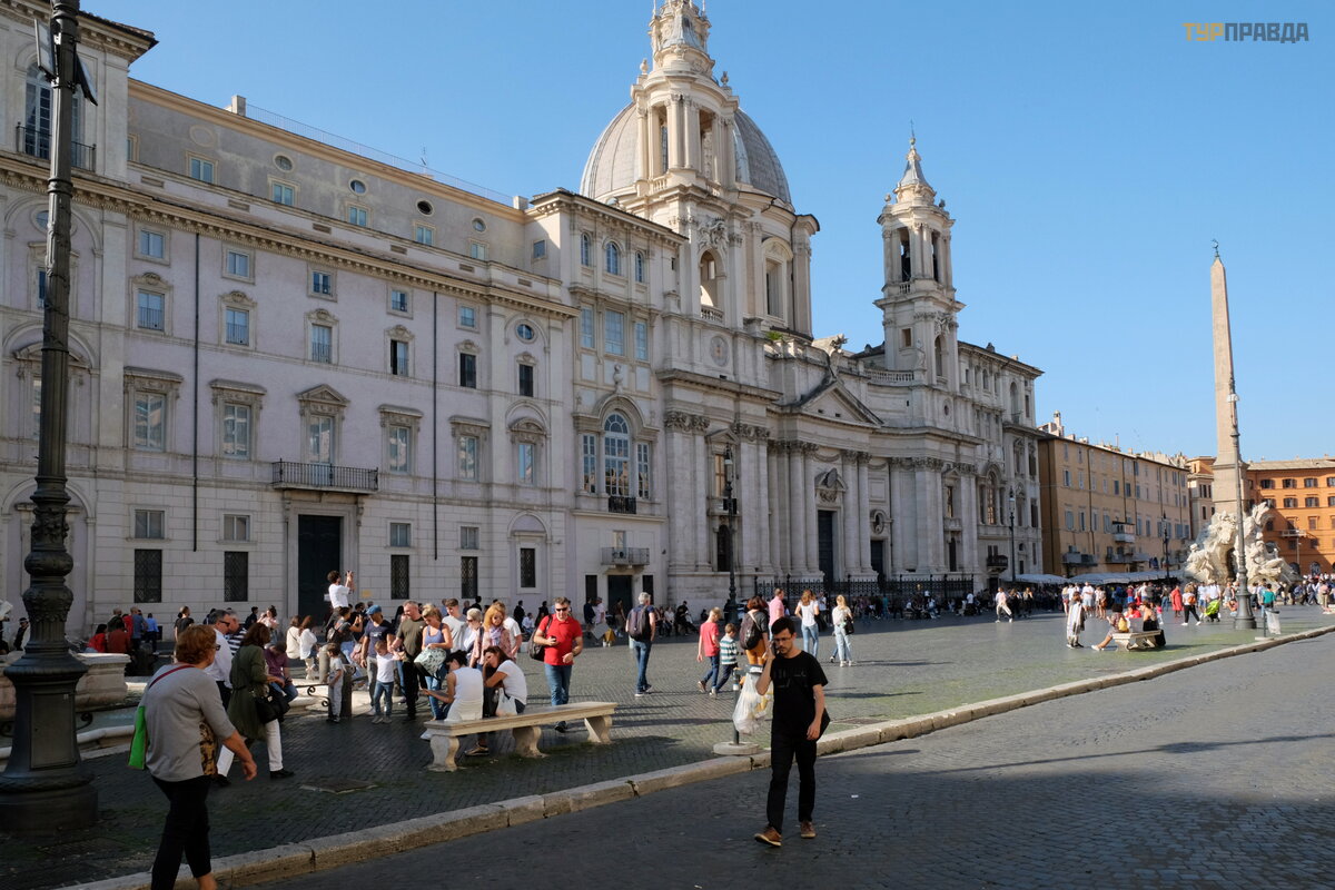 Tour guides feed tourists stories, as if the figures of the Bernini fountain are horrified by the church of St. Agnes, in the work of which Borromini took part.