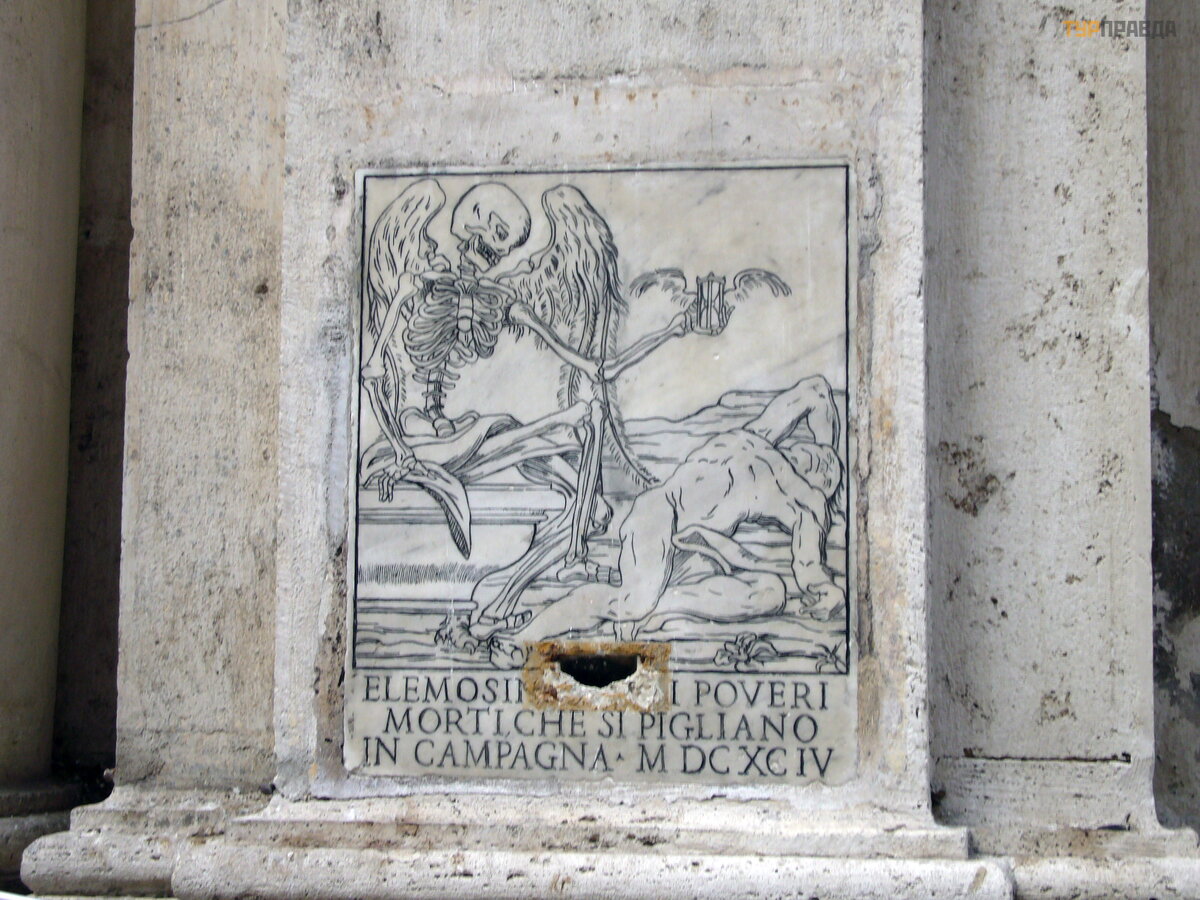 Nearby is the Church of Santa Maria dell'Orazione e Morte. From the 16th to the 19th centuries the nameless dead are buried here, the skeletons are in the crypt of the church.