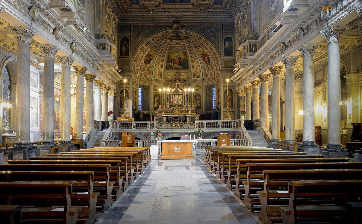 Let's go towards the Forums through San Martino ai Monti Square with the church of the same name San Martino ai Mont, founded by Pope Sylvester I, first built in 314-324. The present church was built by Pope Sergius II (844-847) in 845. This is the view from the apse:
