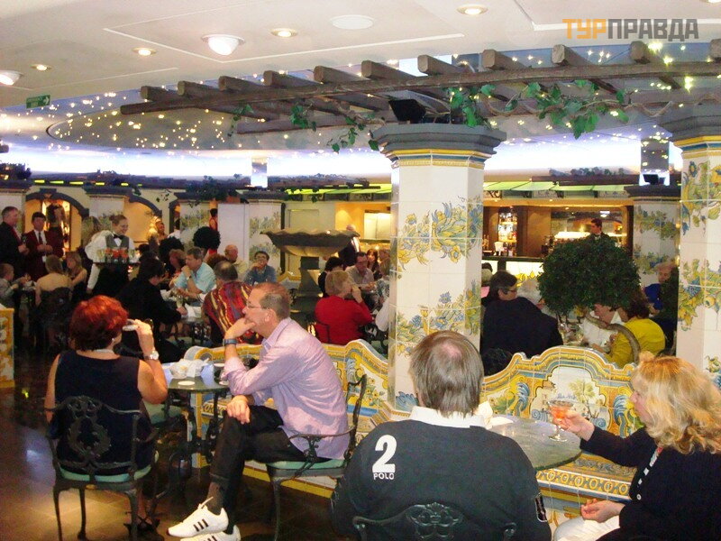 I recalled the American Voyager, where the street-promenade was the central axis of the ship, on which were located basically all the bars, cafes, shops, etc. , restaurants (three) at the stern, everything was clear.
