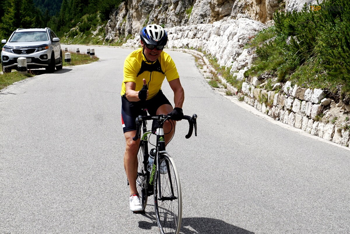 Well done Europe and Italians. Many go to the mountains. It's beautiful and cooler than the sea. Now I myself think about the fact that the climate is getting hotter, and I need to look for a cooler rest. As much as I drive, I am amazed that thousands of tourists with chopsticks walk along all the mountain roads. True, some have them in their hands, and some have them in their teeth, but they still go. I met pensioners at an altitude of 2354 meters, who, apparently, knew Lenin in Europe. So they moved very fast. There is one cyclist for every five cars on the road. Mostly sports cyclists. France de Tours is very popular here. Many dream of participating in these races. Bicycles rise to heights of more than two thousand meters. How much strength and stamina do you need? In Russia, according to reports, millions of Russians go in for sports, and there is no one to serve in the army. Military commissars turn gray prematurely. Even morons and junkies are taken to serve in the army. I was convinced that the majority of Europeans lead a healthy lifestyle not for statistics, but for themselves personally. I examine the mountain peaks through the tube, and around them at the foot of hundreds of tourists, like ants. As they say, life goes on.