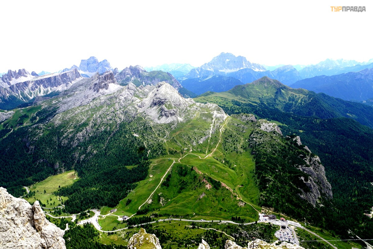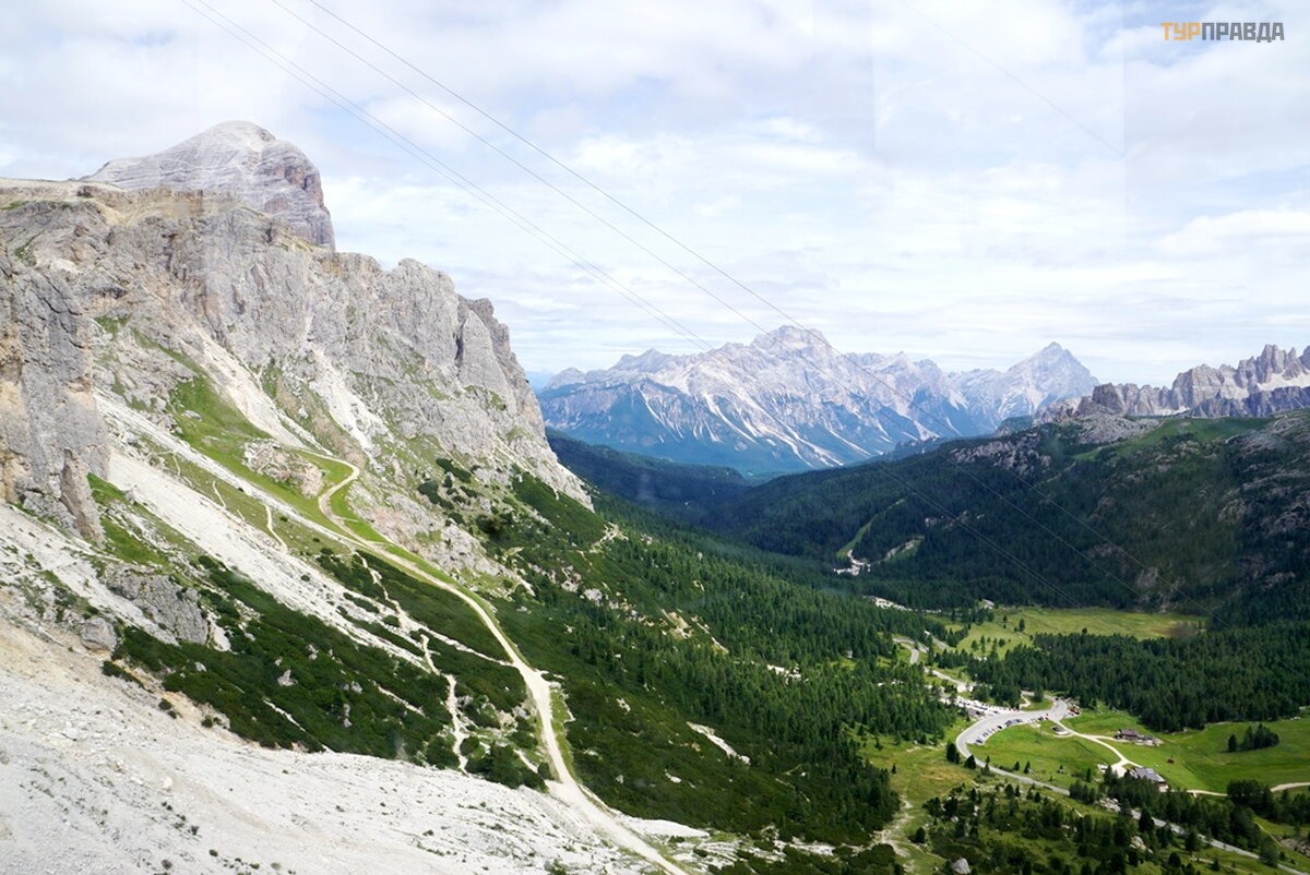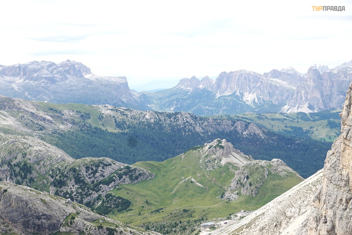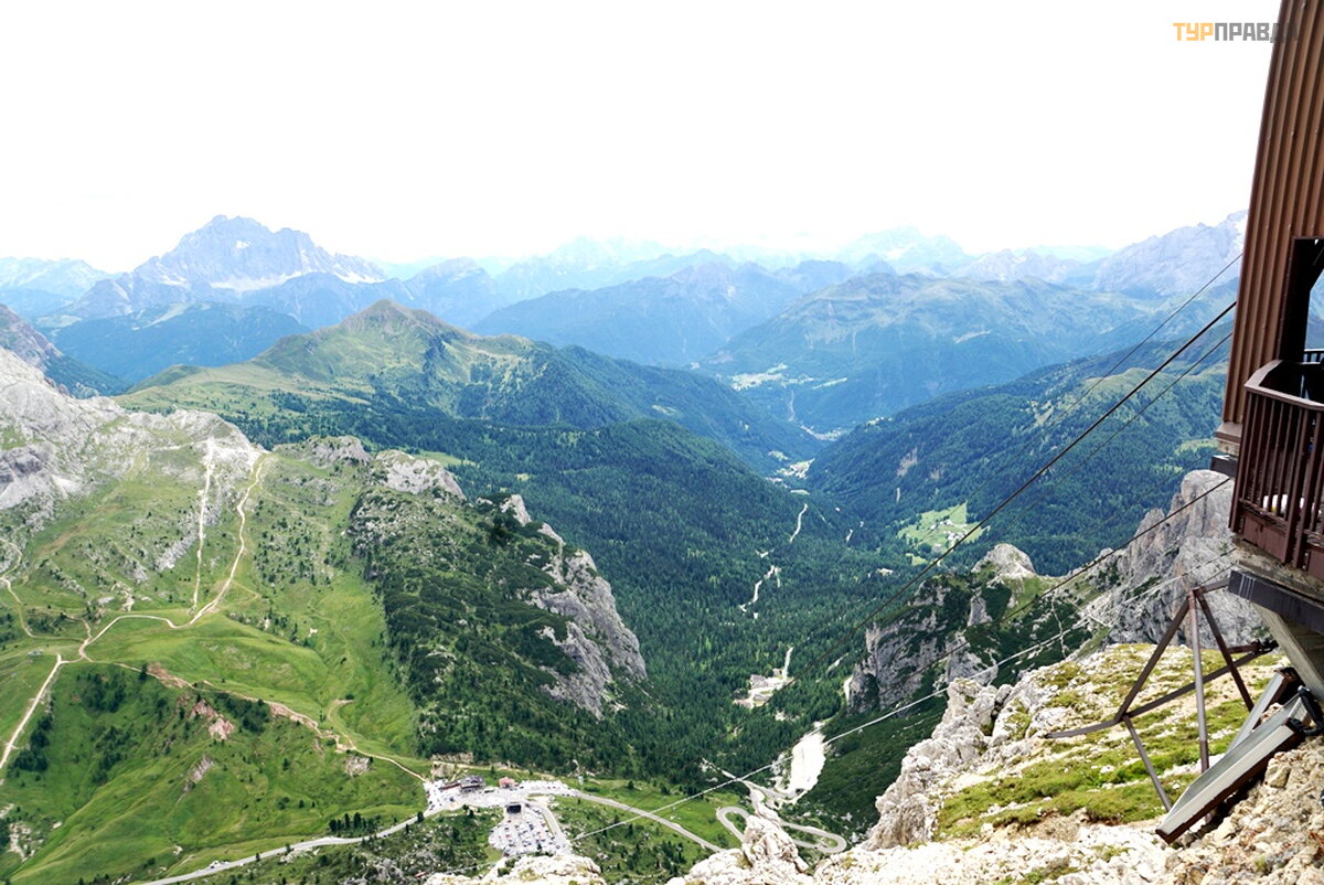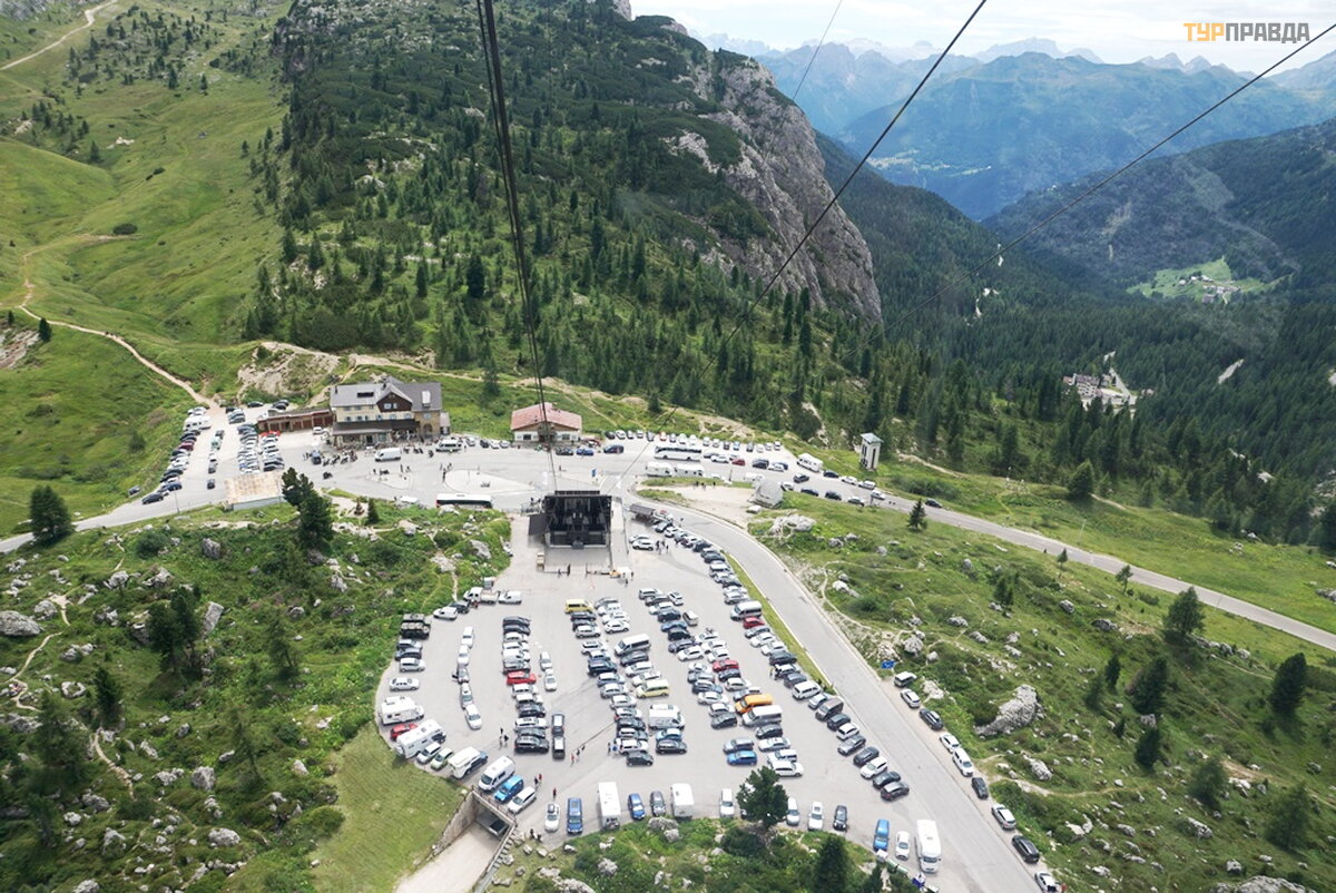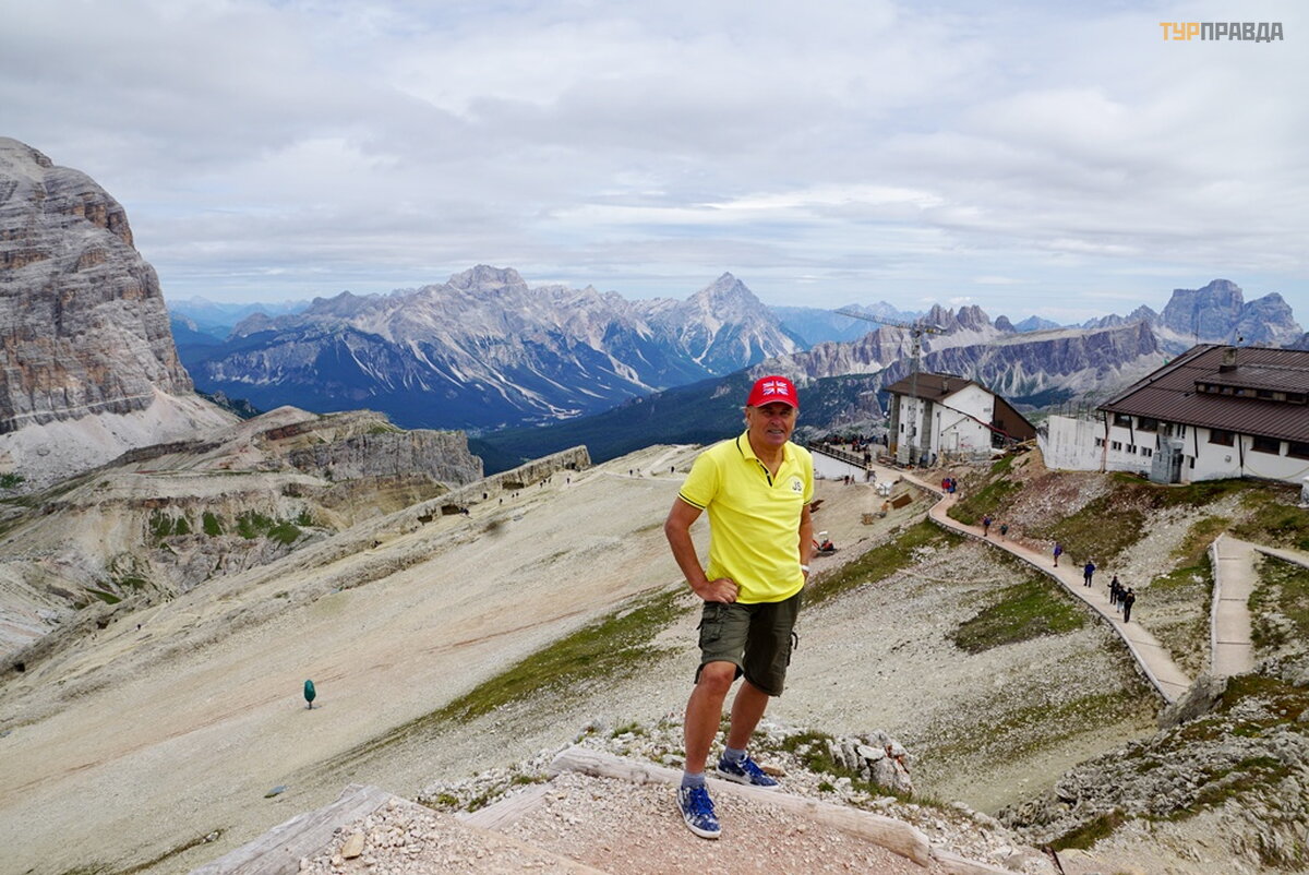I tried to get on the cable car faster in order to soar up to the mountain peak. I paid 12 euros for the ascent and descent with one transfer. I forgot to dress warmly again. All the tourists looked at me with surprise. It's good that I have a red cap with the emblem of England, so they apparently called an Englishman a fool, but not a Russian. On the second site, the height is 2792 meters. Clouds rolled in, then dissolved. Sea of impressions. The beauty of the Dolomites fascinated me. Temperature + 7. Wind. He was, had seen enough, froze, and dived into the cabin of the lift. The heat is + 28 below. Now I will definitely reach Cortina di Ampezzo