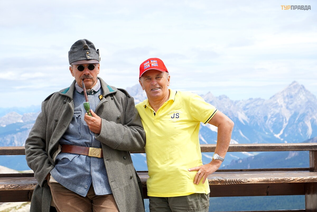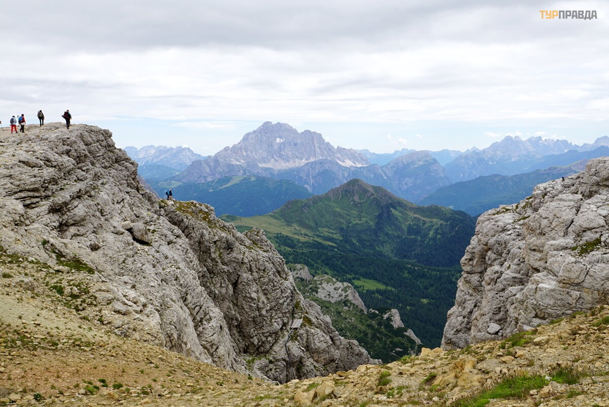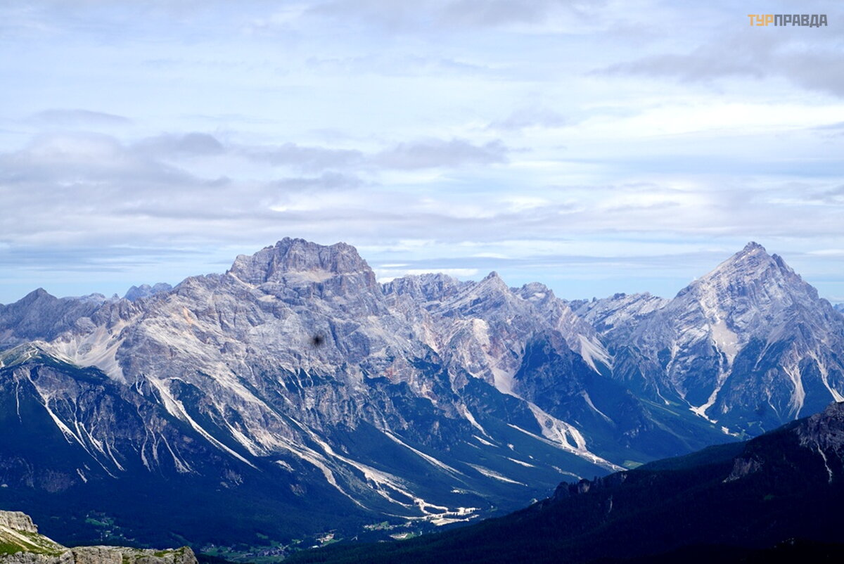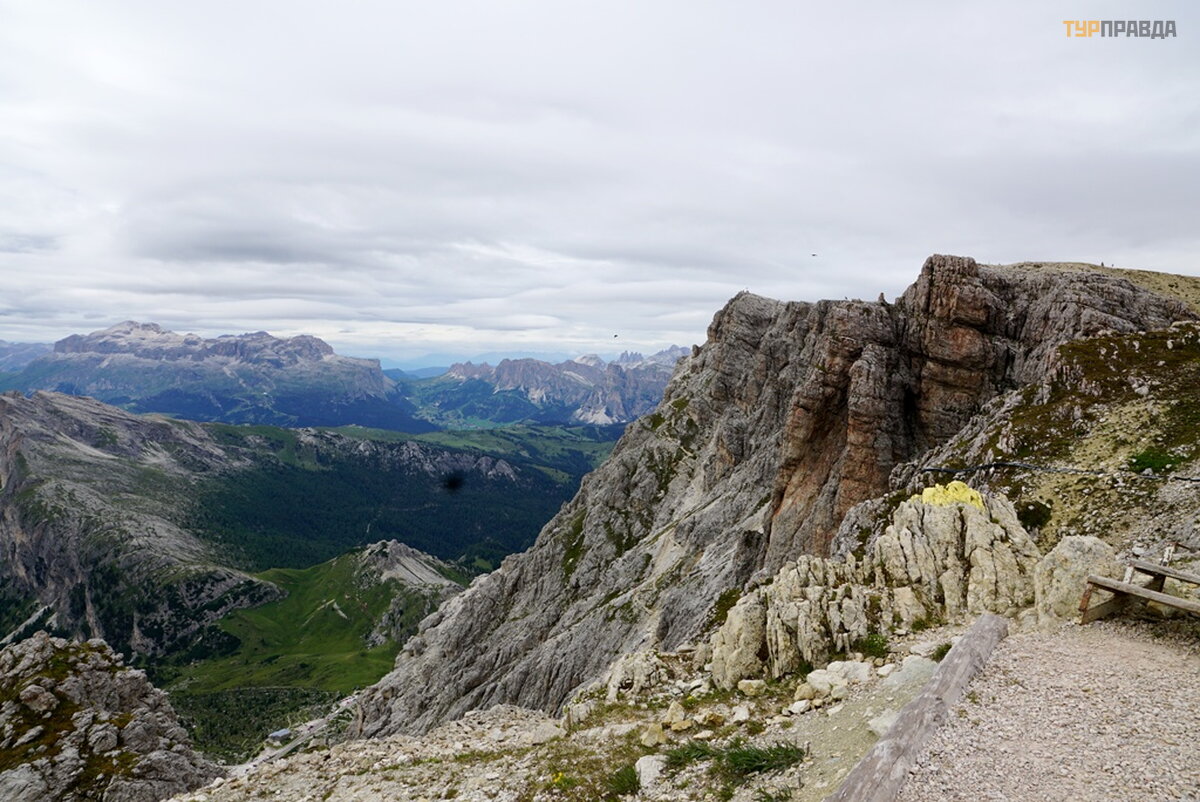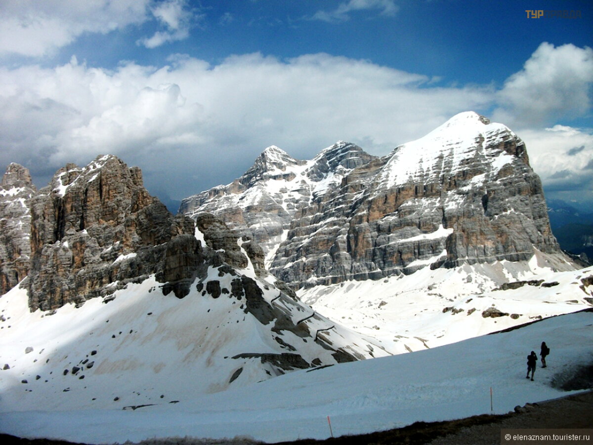 I tried to get on the cable car faster in order to soar up to the mountain peak. I paid 12 euros for the ascent and descent with one transfer. I forgot to dress warmly again. All the tourists looked at me with surprise. It's good that I have a red cap with the emblem of England, so they apparently called an Englishman a fool, but not a Russian. On the second site, the height is 2792 meters. Clouds rolled in, then dissolved. Sea of impressions. The beauty of the Dolomites fascinated me. Temperature + 7. Wind. He was, had seen enough, froze, and dived into the cabin of the lift. The heat is + 28 below. Now I will definitely reach Cortina di Ampezzo