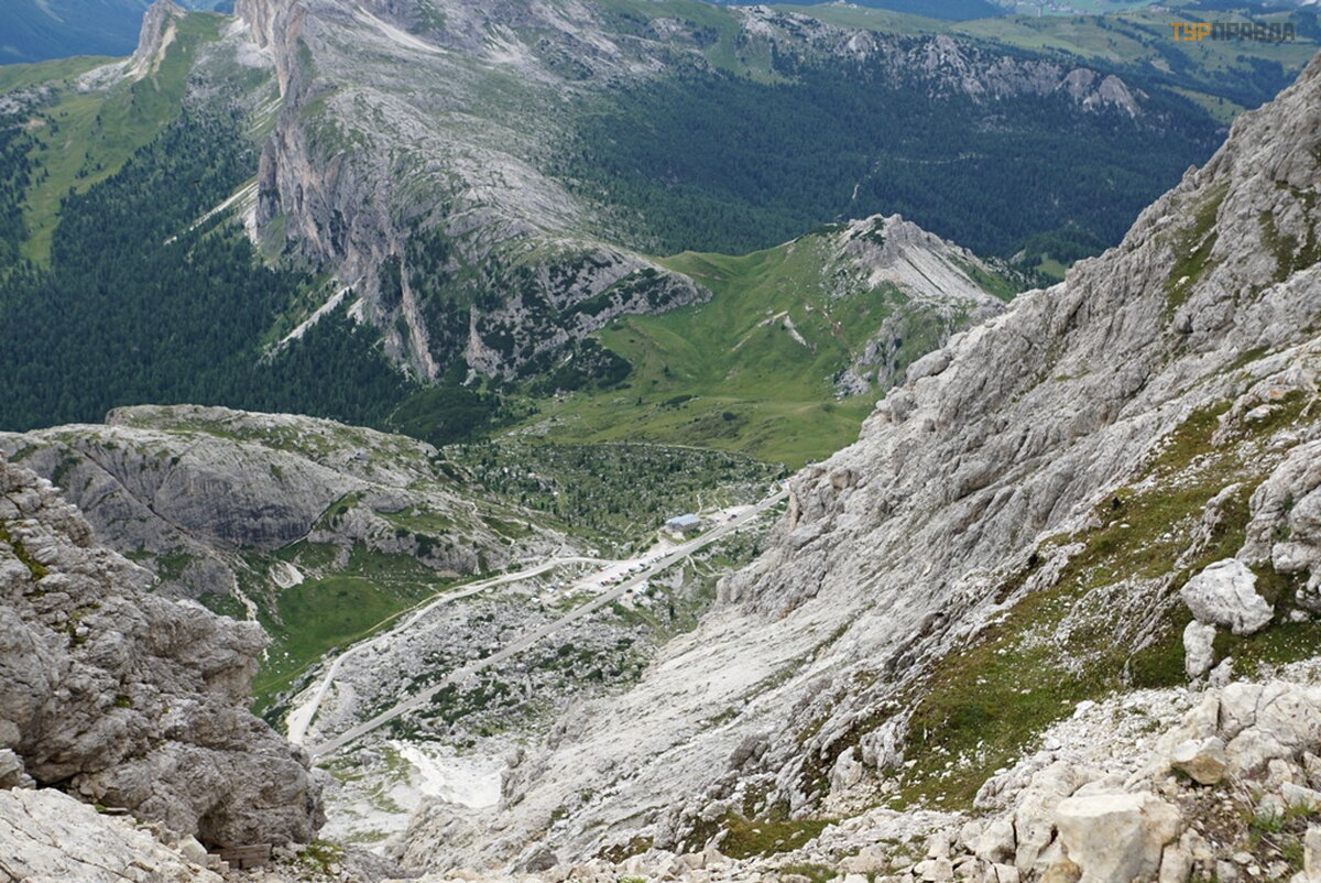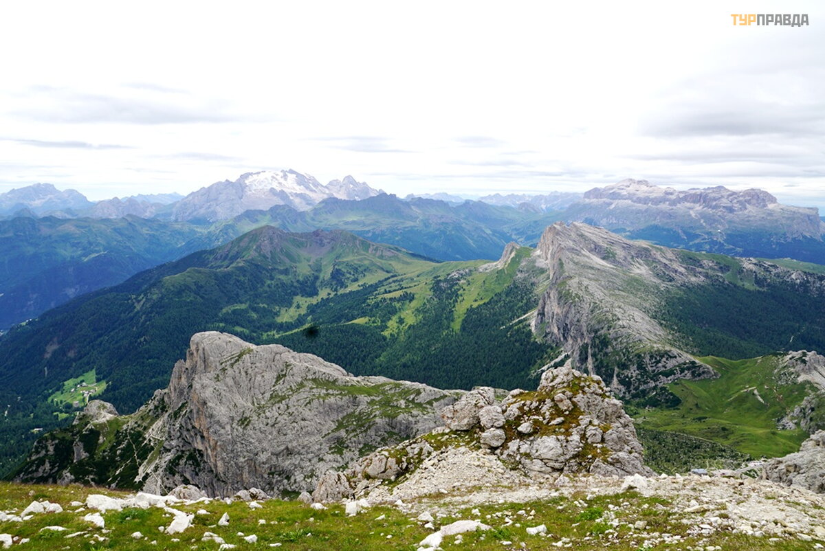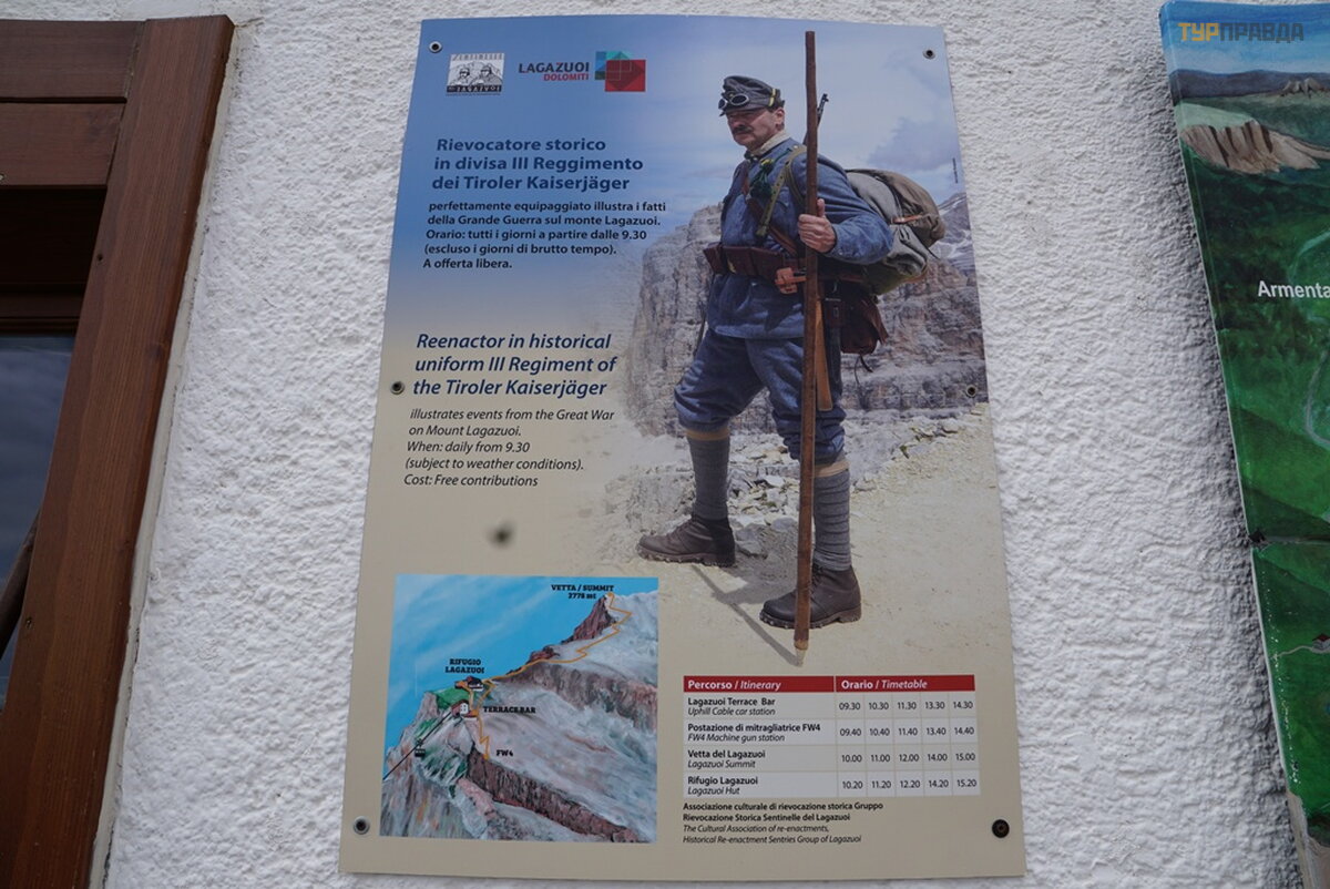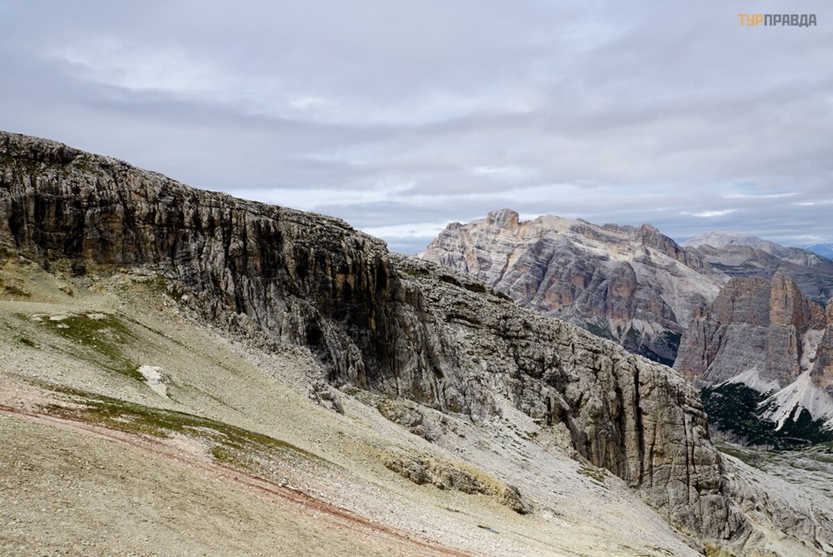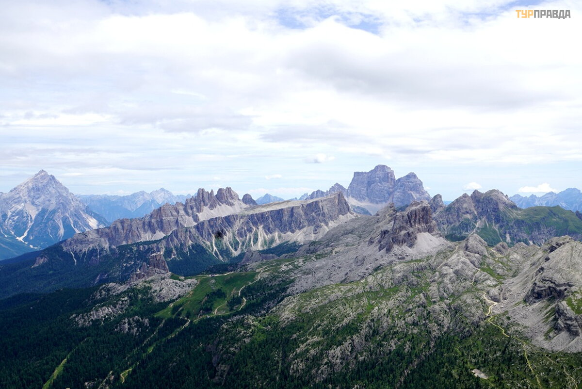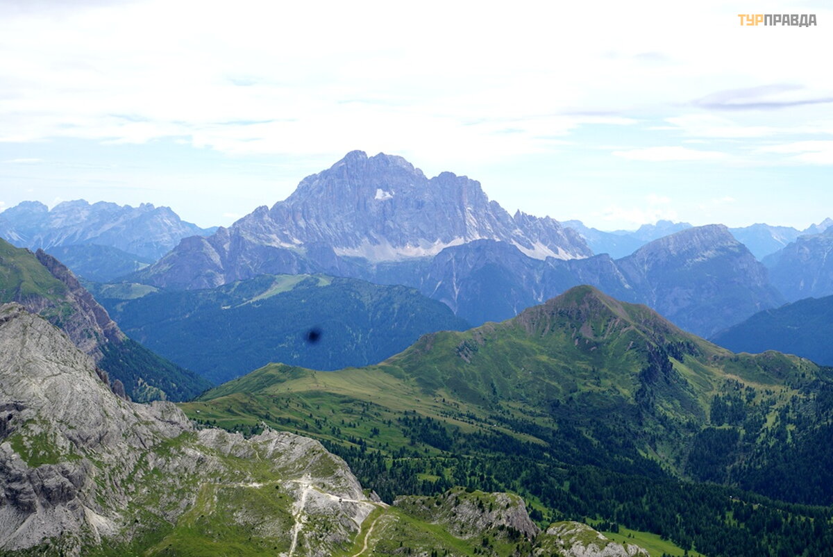 I tried to get on the cable car faster in order to soar up to the mountain peak. I paid 12 euros for the ascent and descent with one transfer. I forgot to dress warmly again. All the tourists looked at me with surprise. It's good that I have a red cap with the emblem of England, so they apparently called an Englishman a fool, but not a Russian. On the second site, the height is 2792 meters. Clouds rolled in, then dissolved. Sea of impressions. The beauty of the Dolomites fascinated me. Temperature + 7. Wind. He was, had seen enough, froze, and dived into the cabin of the lift. The heat is + 28 below. Now I will definitely reach Cortina di Ampezzo