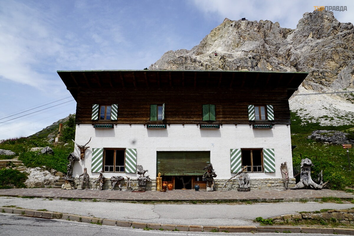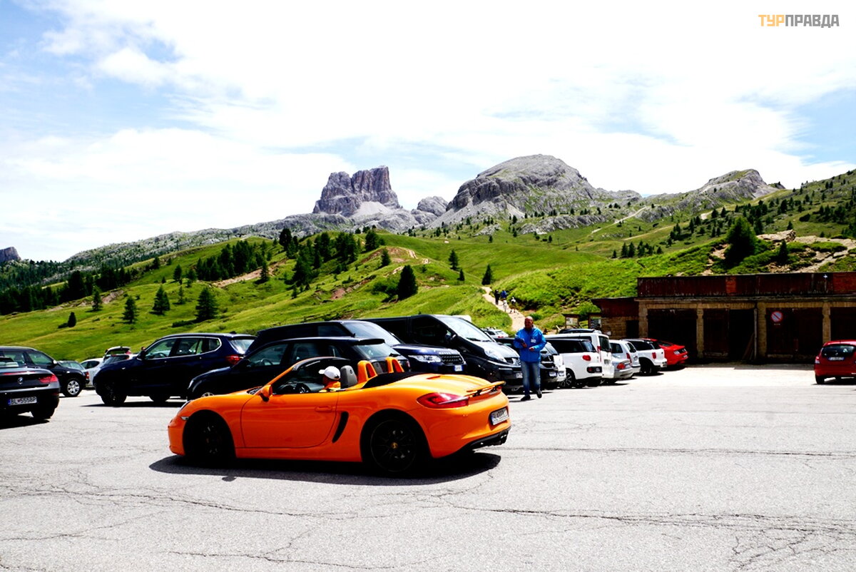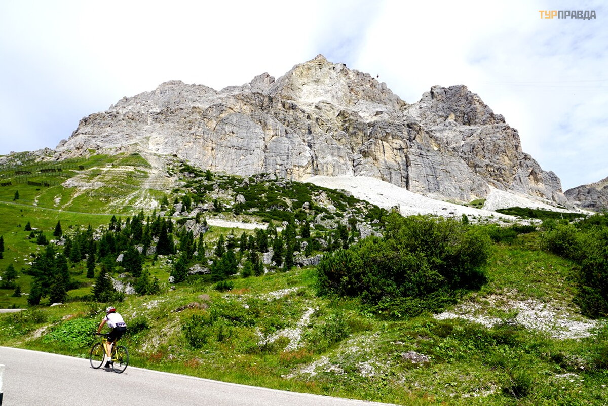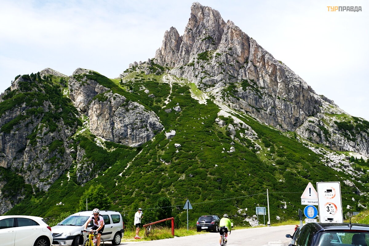 When there was about twenty minutes drive to Cortina di Ampezzo, after a long climb uphill, I unexpectedly left for the Falzarego pass (2117 meters). The road is narrow, who knows what is on the mind of the oncoming driver? Maybe he is an Italian admirer of Mara Bagdasaryan, a participant in the scandalous Gelendvagen race in Moscow, so he was driving at a speed of 60-70 km. I was overtaken with a whistle and a roar by motorcyclists who travel around Europe in search of adventure on their own... From the roar of motorcycles, the locals say that the chickens have stopped laying. It is a pity that there are sanctions between Italy and Russia, otherwise we would supply them chicken eggs from our poultry farm from Novorossiysk. I continue to admire cyclists. I, what, pressed the gas and drove off, and they keep pedaling all the time to call on the next pass.