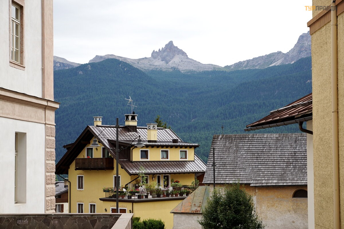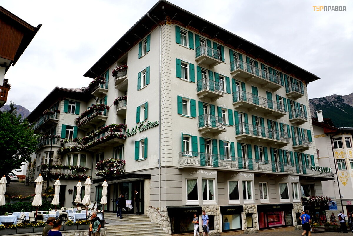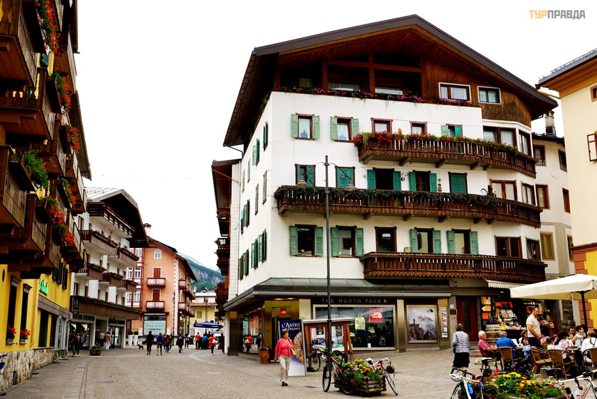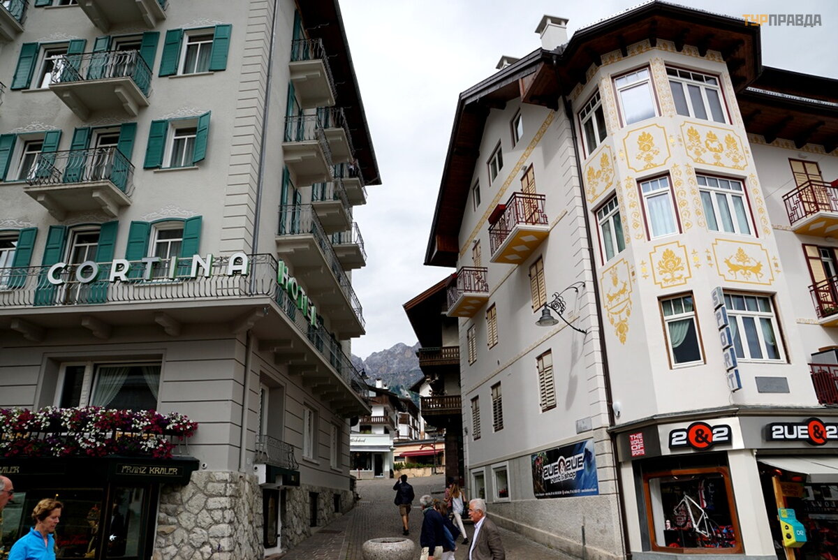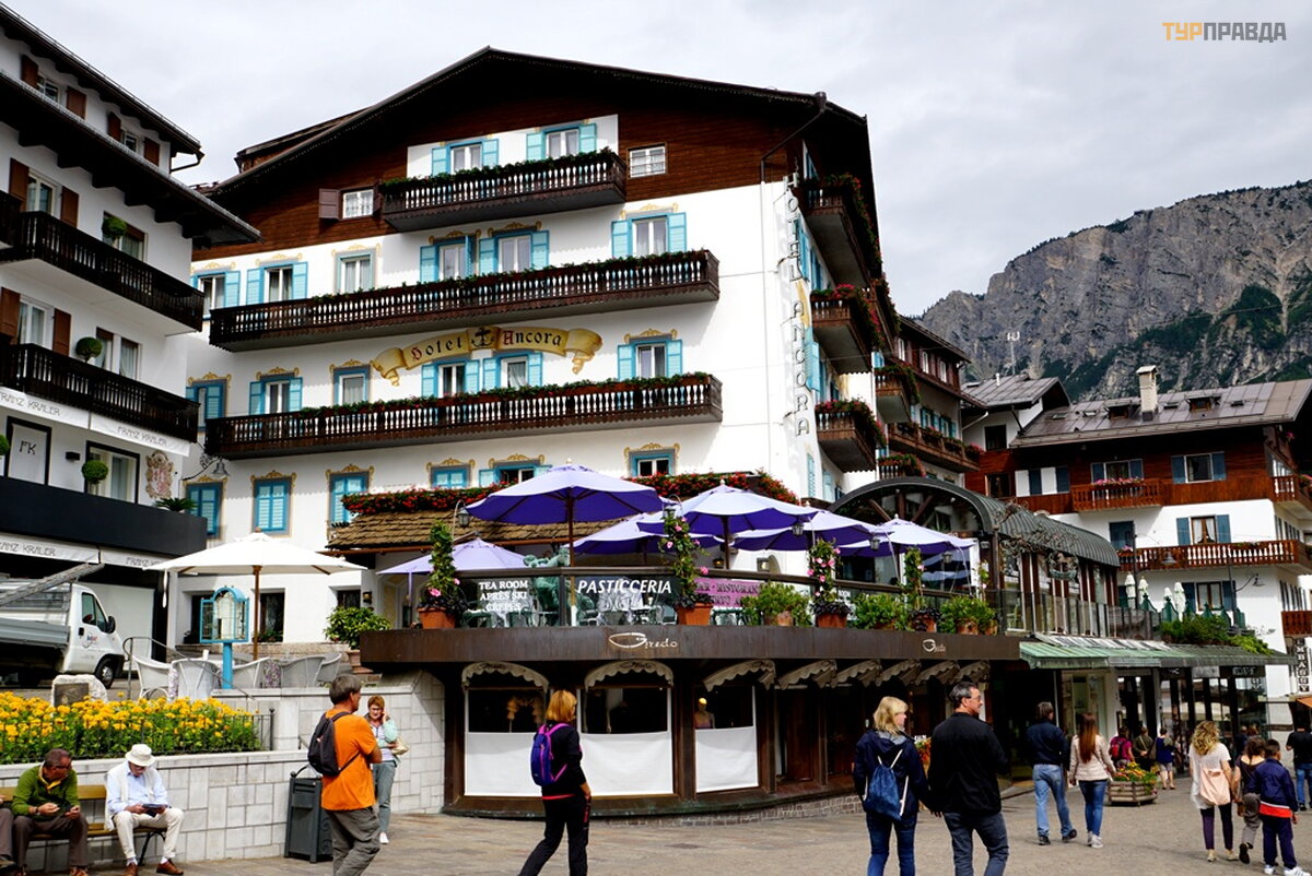 My first task was to find a hotel at a reasonable price for me with a parking lot. At first I thought it was easy, because it's not winter. Wrong. There are almost no places, and where there is, the price is about 8.000 rubles per night. Now I choose hotels carefully. If the windows of the room overlook the main street or square, then immediately refuse. If the number is a bar-restaurant, then I also refuse. If parking is under the windows, then this is terrible, especially when bikers come in and out, whose hearing is almost completely absent. Now I'm looking for a hotel in an alley, or a dead end street. With great difficulty I found a similar hotel for 7680 rubles. All bars have sandwiches and beer. I didn’t find good food with soup, and where there is good food, the price is within 60 euros. It’s good that I went to the supermarket before this town, where I bought the necessary products. He quickly prepared a hearty soup with herb spices, washed down with homemade Italian wine, and went out to get acquainted with Cortina di Ampezzo.