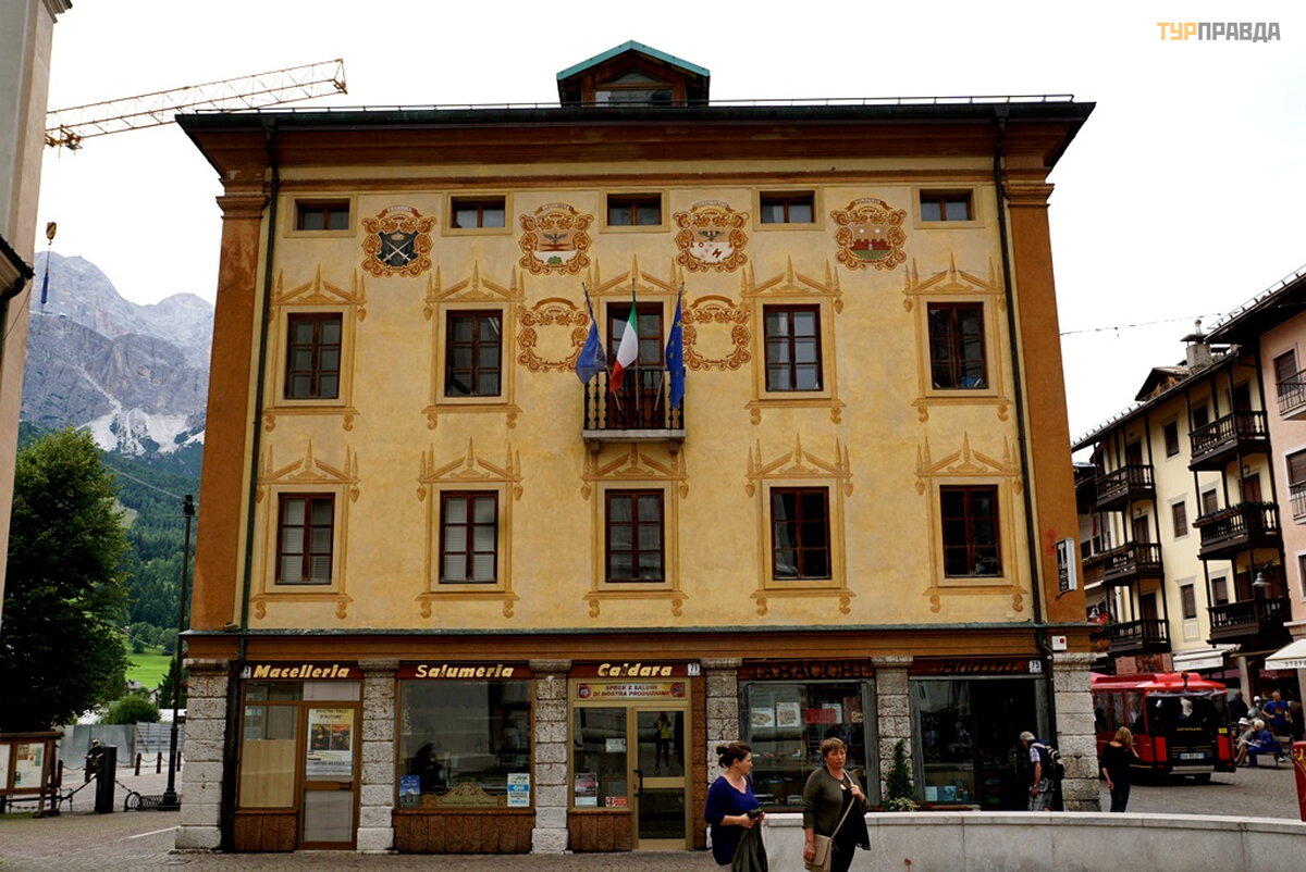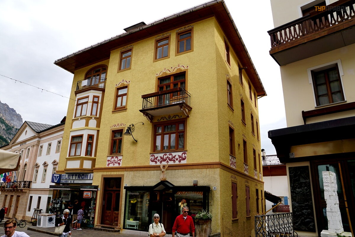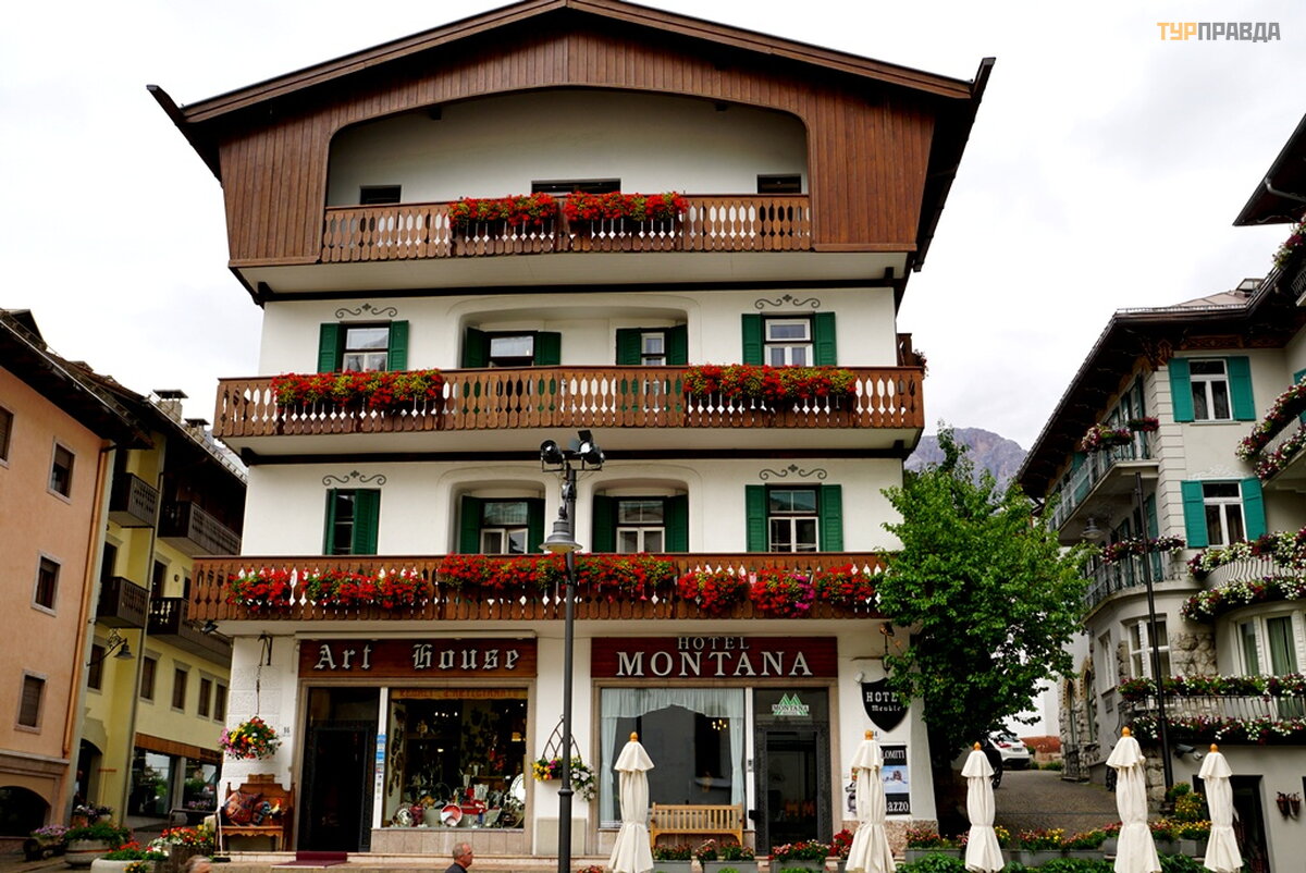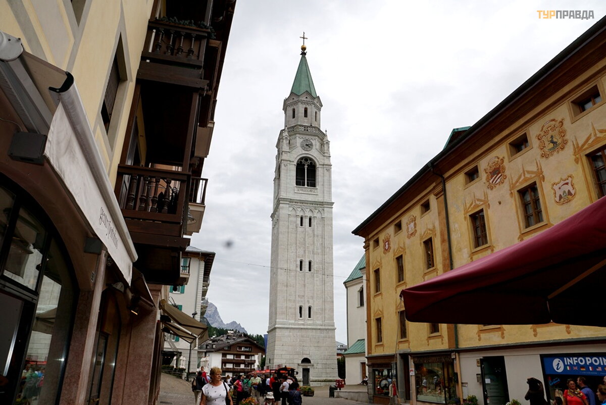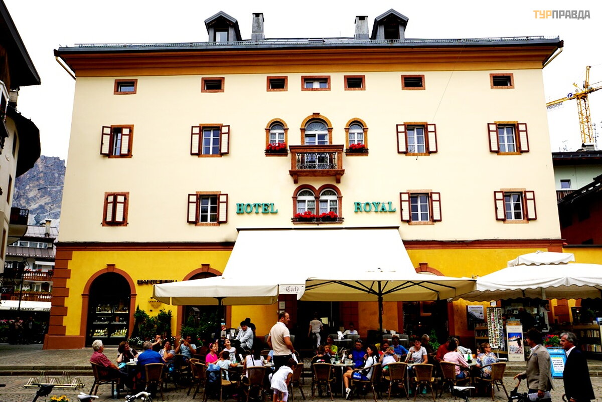 My first task was to find a hotel at a reasonable price for me with a parking lot. At first I thought it was easy, because it's not winter. Wrong. There are almost no places, and where there is, the price is about 8.000 rubles per night. Now I choose hotels carefully. If the windows of the room overlook the main street or square, then immediately refuse. If the number is a bar-restaurant, then I also refuse. If parking is under the windows, then this is terrible, especially when bikers come in and out, whose hearing is almost completely absent. Now I'm looking for a hotel in an alley, or a dead end street. With great difficulty I found a similar hotel for 7680 rubles. All bars have sandwiches and beer. I didn’t find good food with soup, and where there is good food, the price is within 60 euros. It’s good that I went to the supermarket before this town, where I bought the necessary products. He quickly prepared a hearty soup with herb spices, washed down with homemade Italian wine, and went out to get acquainted with Cortina di Ampezzo.