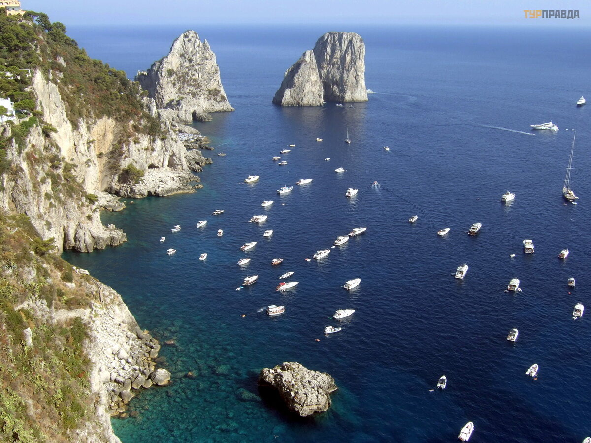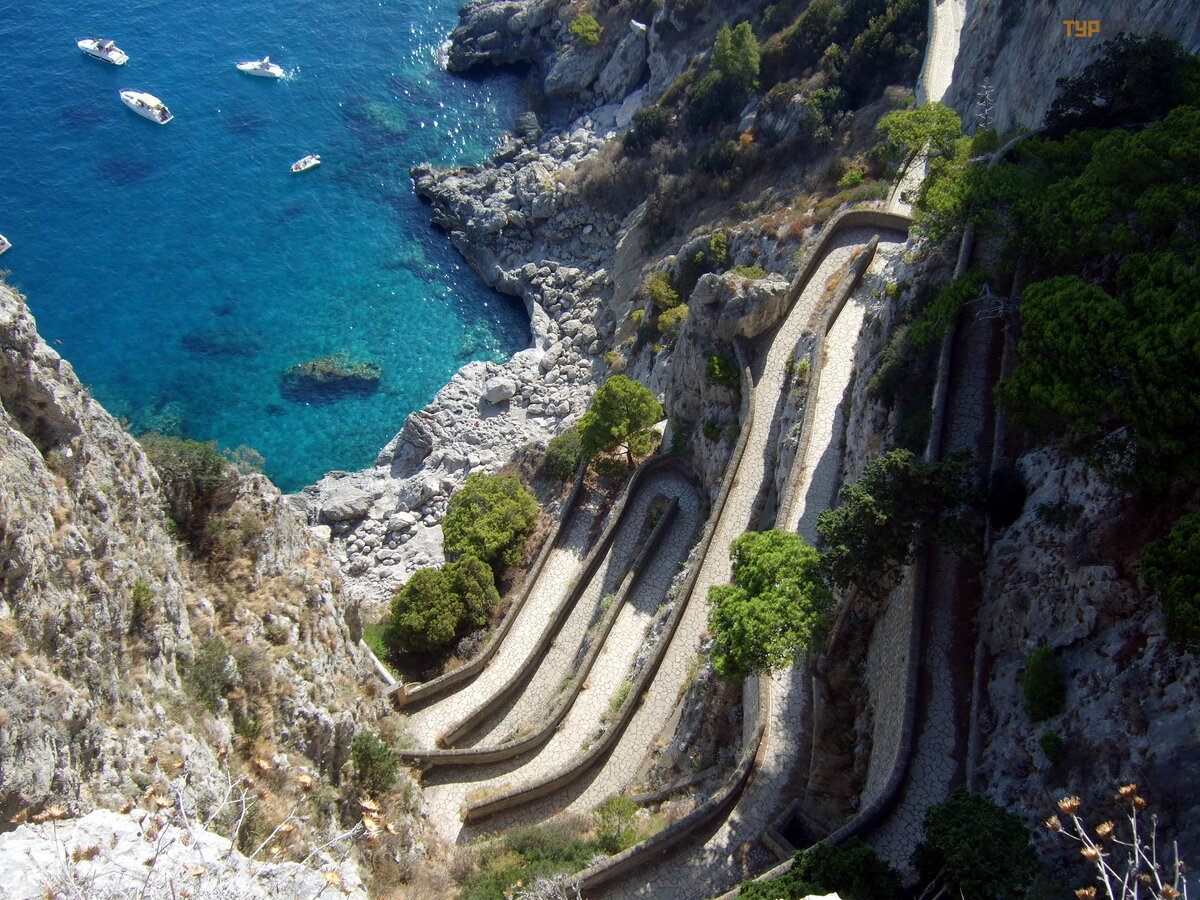 After checking in, we were offered an additional excursion to Capri, costing 80 euros per person, including a guide, ferry and bus to the port. In principle, it was possible to leave on your own, because. ferries run frequently, prices depend on the speed and class of the ferry, We had a high-speed one, sailed for 1 hour, the cost of a round-trip is 43 euros, the slowest goes 1-30, the cost is 35 euros. Upon arrival in Capri, we bought a ticket for a boat around the island - 18 euros. Swim for about 1 hour. I advise everyone such a trip, because. this beauty is indescribable! I have never seen such a beautiful color of the sea. Then we took the bus along the steepest serpentine up to the town of Anacapri, walked there and climbed the cable car (10 euros round trip) to the very top, from where amazing views. After a sleepless night, I was so tired that I fell asleep several times on the way down the cable car.