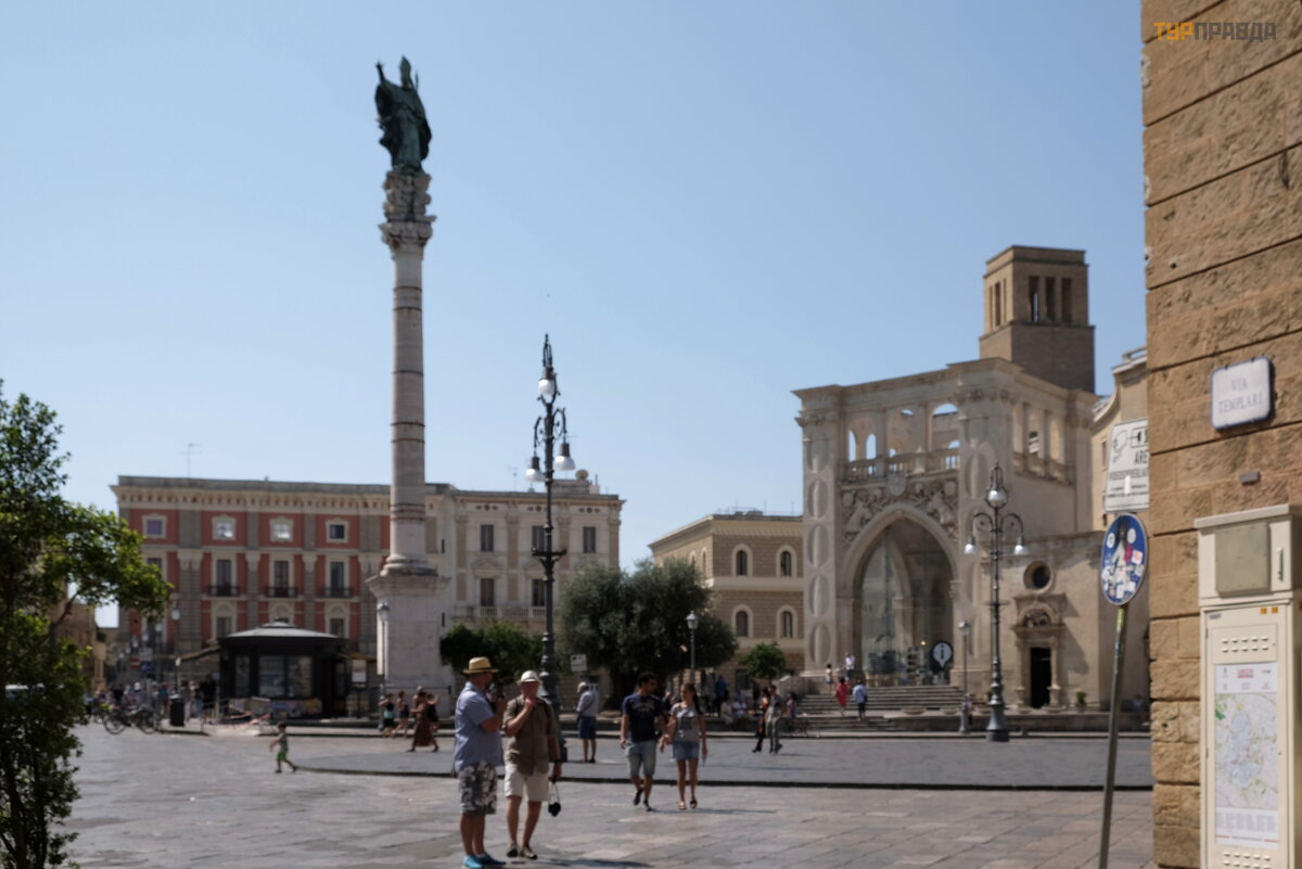 Since the hotel is far from communications, independent travel was swept aside, I had to buy an excursion for 80 euros Lecce-Alberobello. In Lecce, at the very heel of Italy, we have long dreamed of going to see the film "Idle Shots", where the action takes place there. It is not for nothing that the ancient city is called the "South Florence" and the "Golden City". The houses there are made of lecchisa stone, which has acquired a golden color over time. The city is a real baroque feast, each temple and just a house can be viewed for a long time. In Lecce we had a wonderful guide Olga Spesivtseva, a real connoisseur. It is difficult to tell about all the beauty in a short review. In addition, Lecce has a whole culture of papier-mâ ché figures, a lot of interesting works on the streets and in shops. They also bake delicious Rustico pies stuffed with mozzarella and tomato paste.