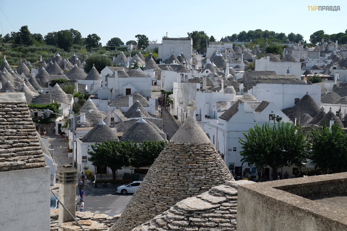 After lunch we went to Alberobello, the city of the famous trulli - cone-shaped buildings resembling the houses of gnomes or hobbits. The local guide told us that in the Middle Ages, in order not to pay tax on the house, the locals came up with such a shape of the house, like - this is not a house, but a shed, the stones were tightly laid on top of each other without a cement bond and the house was disassembled quite quickly. trulli were often encountered along the way, but in the city entire areas are occupied by trulli, residents still live in them, and there are many all sorts of shops. Pretty interesting place