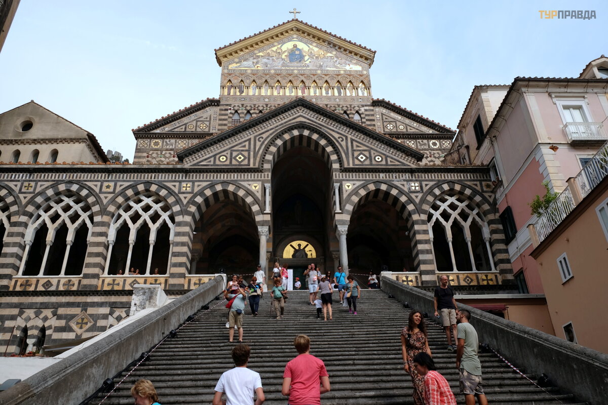 In the morning, our program included a visit to Sorrento, as an additional excursion, a trip along the Amalfi Coast for 35 euros was offered. We decided to go, although it turned out to be an unsuccessful decision: they would have brought us to Sorrento anyway (it would take 1.5 hours). There is nothing remarkable in Sorrento itself, we were taken to different shops, not knowing what to do. Then we drove along the coast, making stops for photos in different places, we didn’t stop by Positano. The road is beautiful, of course. Then we stopped to look at something like the "blue grotto" (5 euros), a small cave in the rock with unreal blue water. Then the group was again taken to lunch, it all took a lot of time and we arrived in Amalfi already at 16-00, looked at the Cathedral of St. Andrew the First-Called, and at 18-00 we set the departure time. We decided to go up to Ravello, to see the famous views, but it was not easy to get there, the bus (2 euros) runs every half an hour, it took 30 minutes to climb some unthinkable serpentine, besides, it periodically missed oncoming traffic, because. expensive rather narrow. When we went upstairs, we realized that we didn’t have time at all, hastily clicking on the observation deck, we immediately gathered in the opposite direction, and then the guide called us and said that a costume parade was starting in Amalfi and all buses and cars were being driven out of the city . Our bus also reached halfway and got stuck in a traffic jam, everyone got off and we spanked three kilometers down to Amalfi. There, too, regular buses to Sorrento did not go until the parade ended, our shuttle bus left without us and we got further on our own: by bus to Sorrento, then by train to Naples.