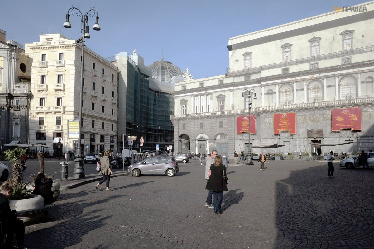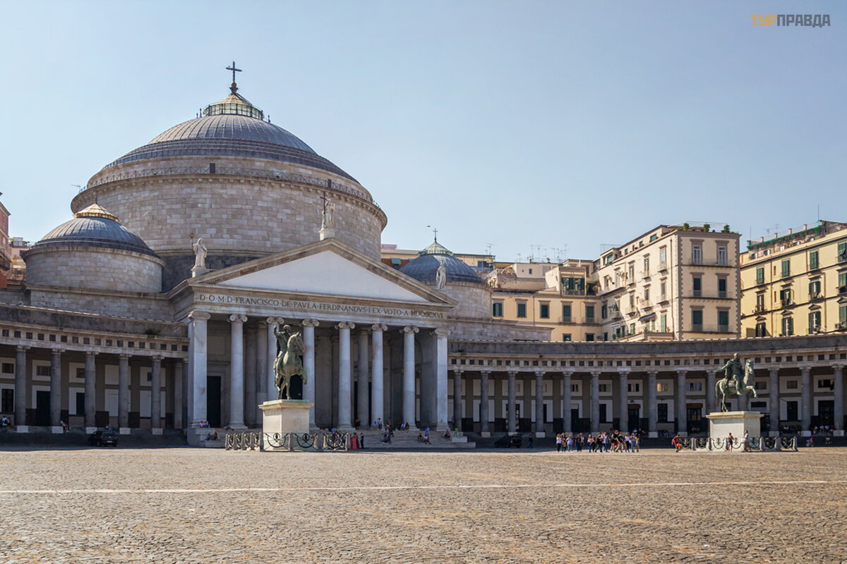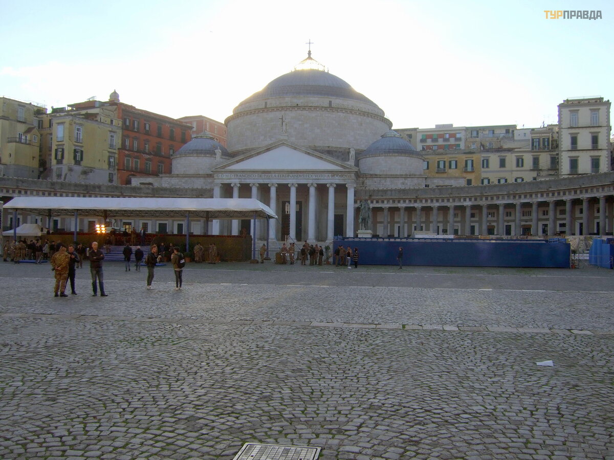 After drinking coffee, we went to Plebeshito (Referendum) Square, where organized tourist groups usually lead. The square received its current name after the unification of Italy, since the plebiscite held in 1860 gave a formal basis for including the lands of the former kingdom of the Two Sicilies into the new country. The idea of the square belonged to the Neapolitan king Joachim Murat, who decided at the beginning of the 19th century. to create, on a truly Napoleonic scale, Murat's forum. However, the square was completed with the Basilica of San Francesco di Paola (architect P. Bianchini; 1817-46), erected by Ferdinand I of Bourbon in gratitude to Heaven for delivering the kingdom from the usurper, and Murat was shot in the autumn of 1815 after he supported Napoleon after his return from Elba. Now it is a pedestrian zone and a place for various events. There was a rehearsal of some kind of military parade on the square.