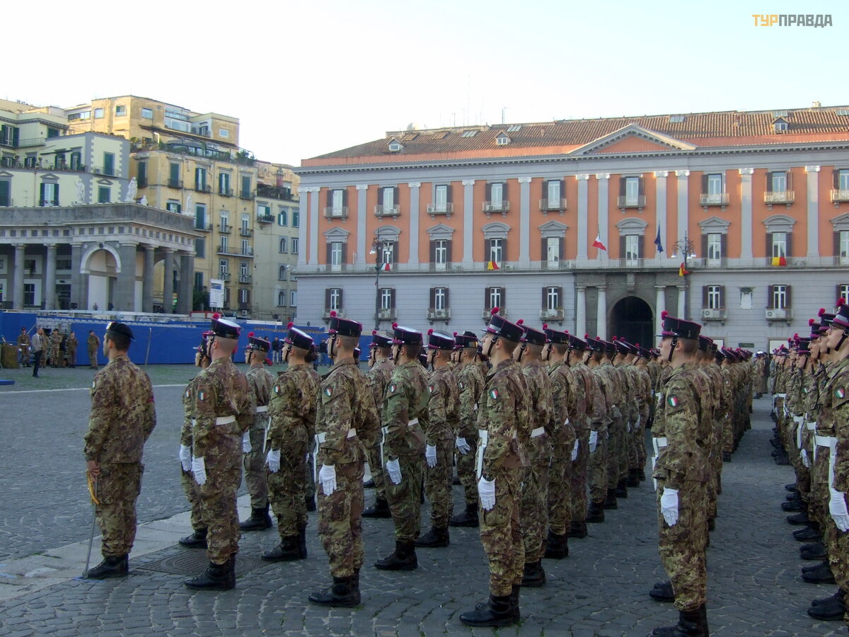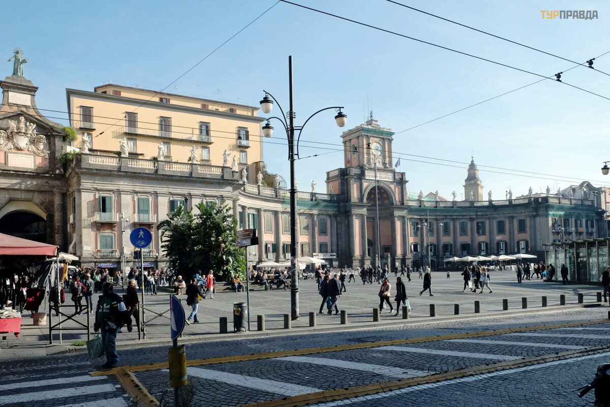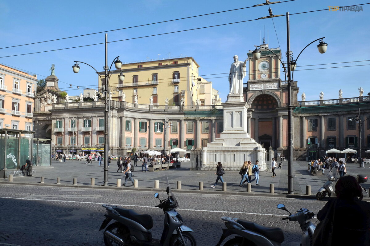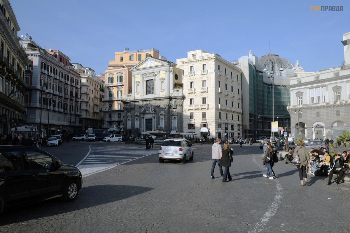 After drinking coffee, we went to Plebeshito (Referendum) Square, where organized tourist groups usually lead. The square received its current name after the unification of Italy, since the plebiscite held in 1860 gave a formal basis for including the lands of the former kingdom of the Two Sicilies into the new country. The idea of the square belonged to the Neapolitan king Joachim Murat, who decided at the beginning of the 19th century. to create, on a truly Napoleonic scale, Murat's forum. However, the square was completed with the Basilica of San Francesco di Paola (architect P. Bianchini; 1817-46), erected by Ferdinand I of Bourbon in gratitude to Heaven for delivering the kingdom from the usurper, and Murat was shot in the autumn of 1815 after he supported Napoleon after his return from Elba. Now it is a pedestrian zone and a place for various events. There was a rehearsal of some kind of military parade on the square.