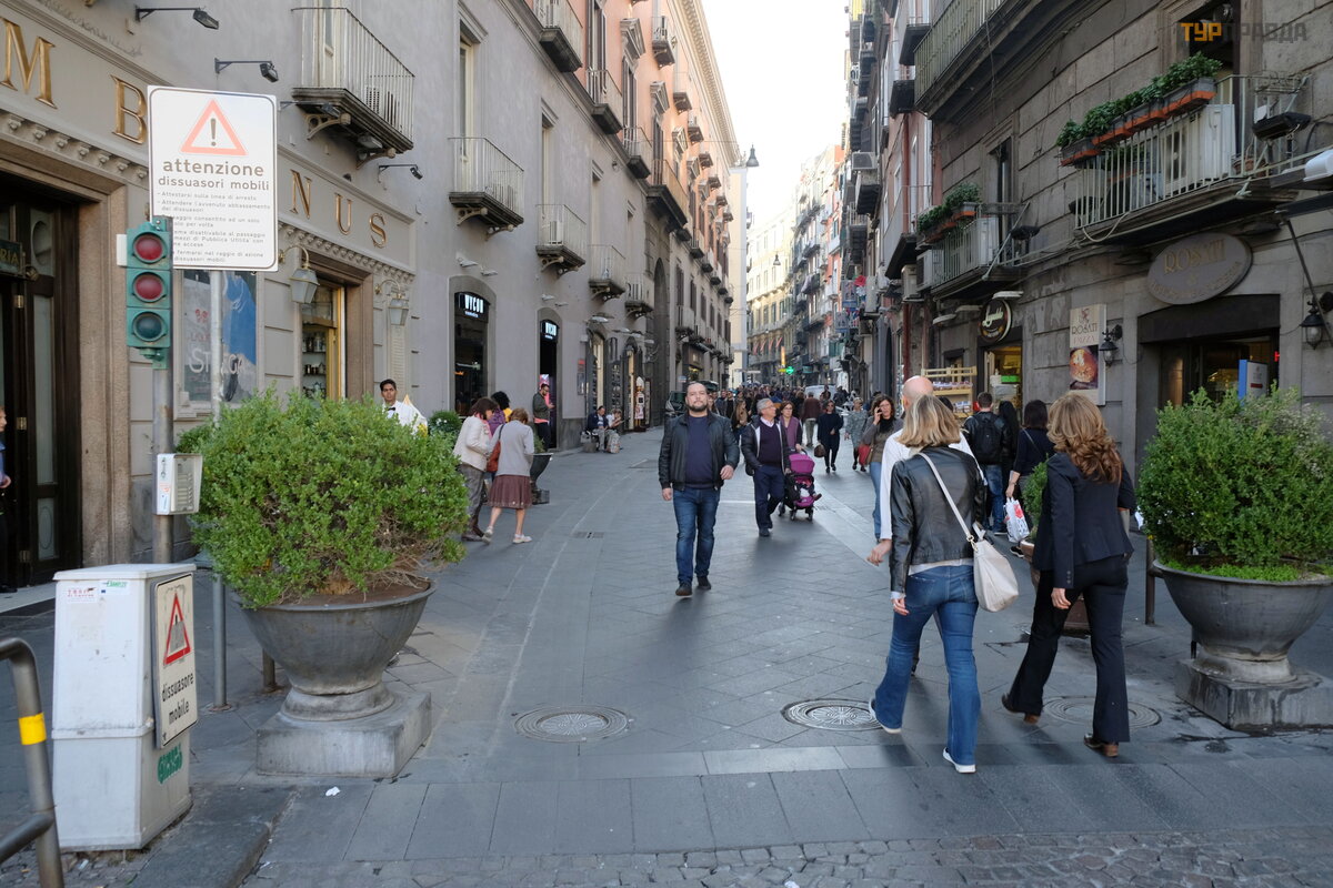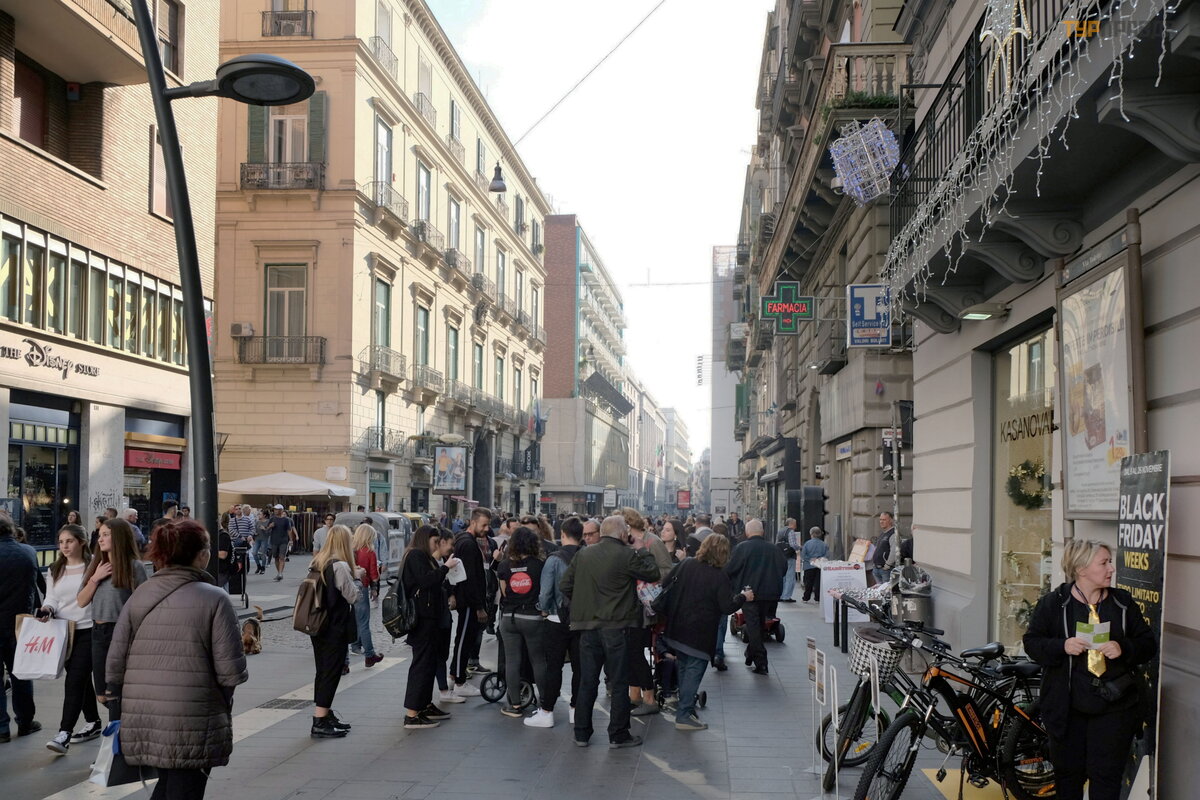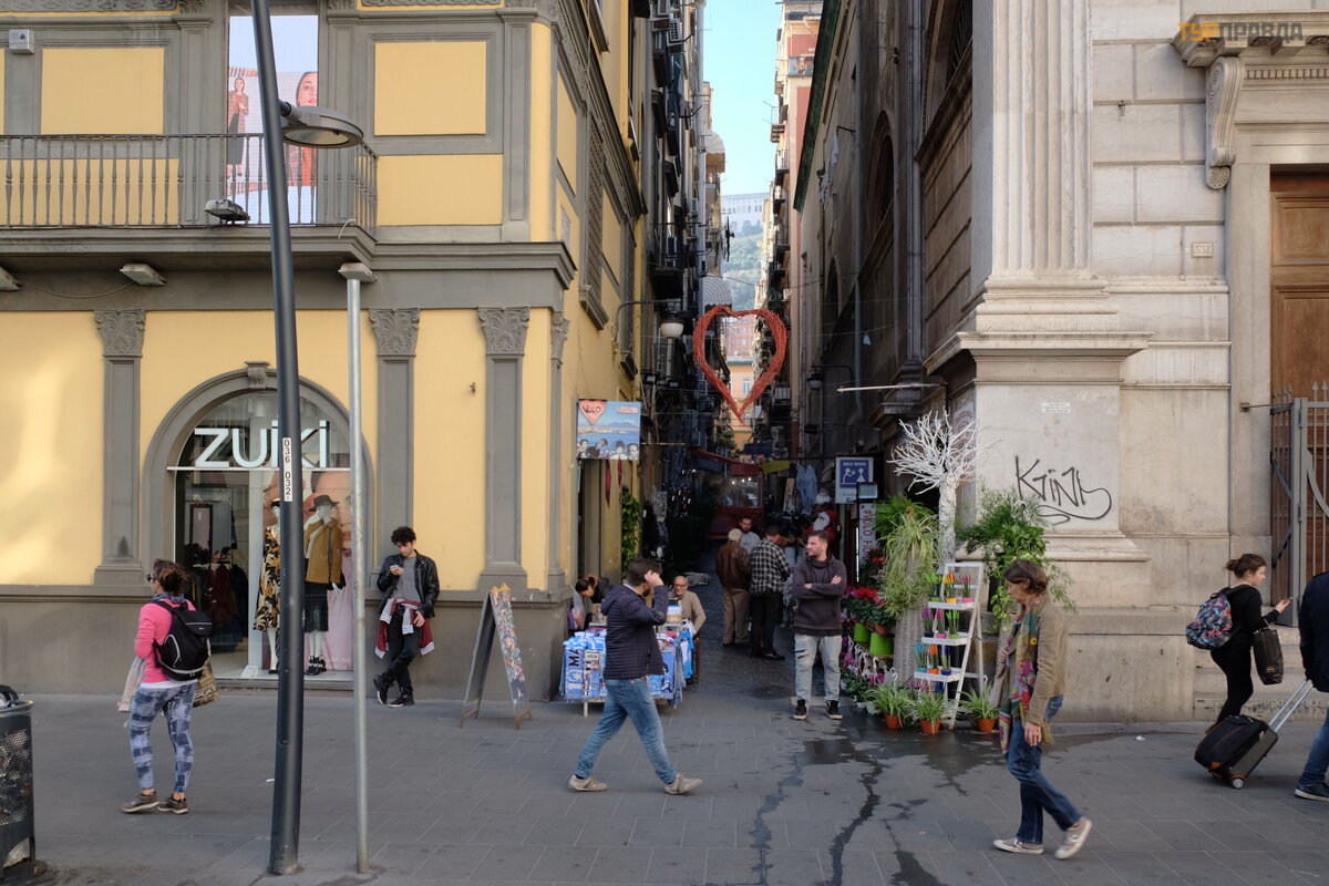 From Dante, the busiest pedestrian street in Naples, Via Toledo (named after Viceroy Pedro di Toledo) begins, with a large number of shops and outlets