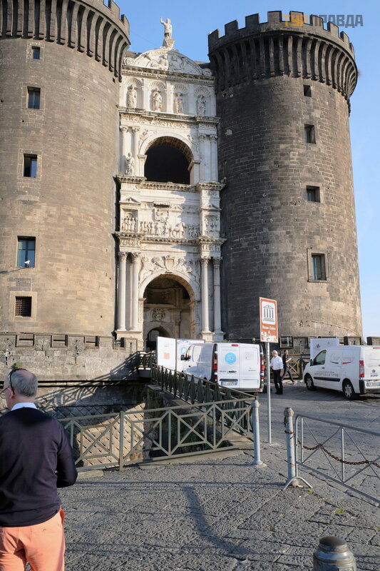 The massive citadel with cylindrical towers has a main entrance - the Arc de Triomphe, the rarest example of Renaissance art in Naples.