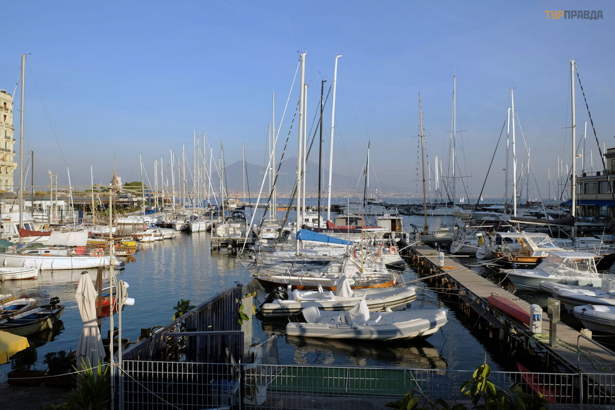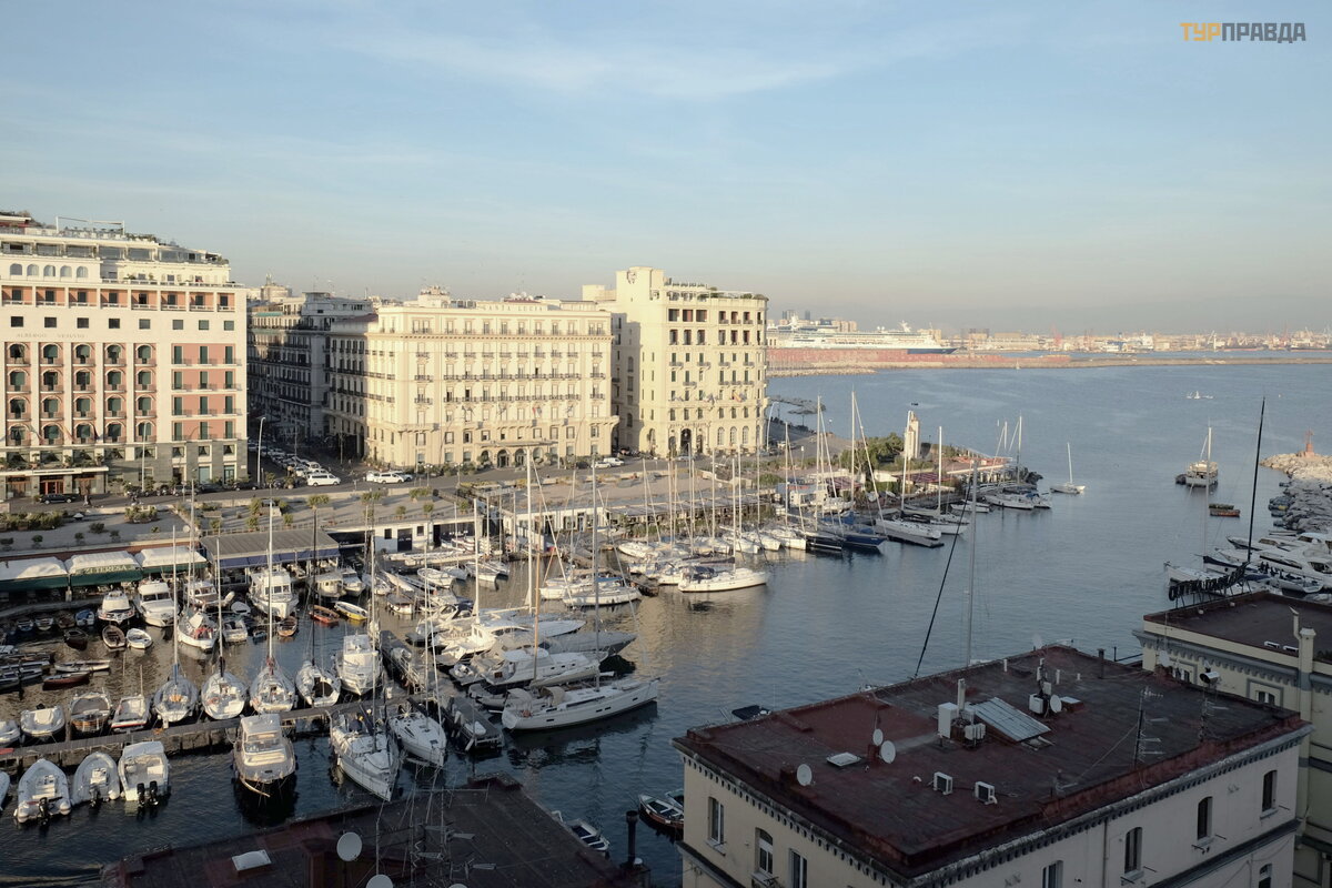 After going around the castle, we exit to the maritime station, where cruise liners moor and ferries leave for Capri and Ischia. The maritime station was built in Naples in 1936 - shortly before World War II by the architect Cesare Bazzani. This is a complex of two completely symmetrical terminals connected by three transverse passages. This structure turned out to be very convenient - soon after the construction of the Naples Marine Station, it turned into one of the largest ports in Europe and remains so even now.