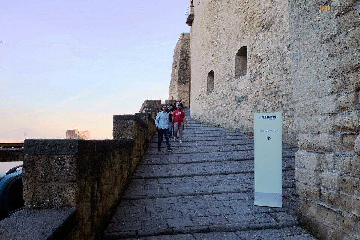 They got to the castle in a roundabout way by bus, because There is no direct pedestrian road; the castle separates the hill from the Naval Station, through which in 1927-30. was dug 600-meter tunnel (gallery) della Vittoria (tunnel della Vittoria), an outstanding piece of engineering art, which made it possible to directly connect the eastern and western parts of Naples.