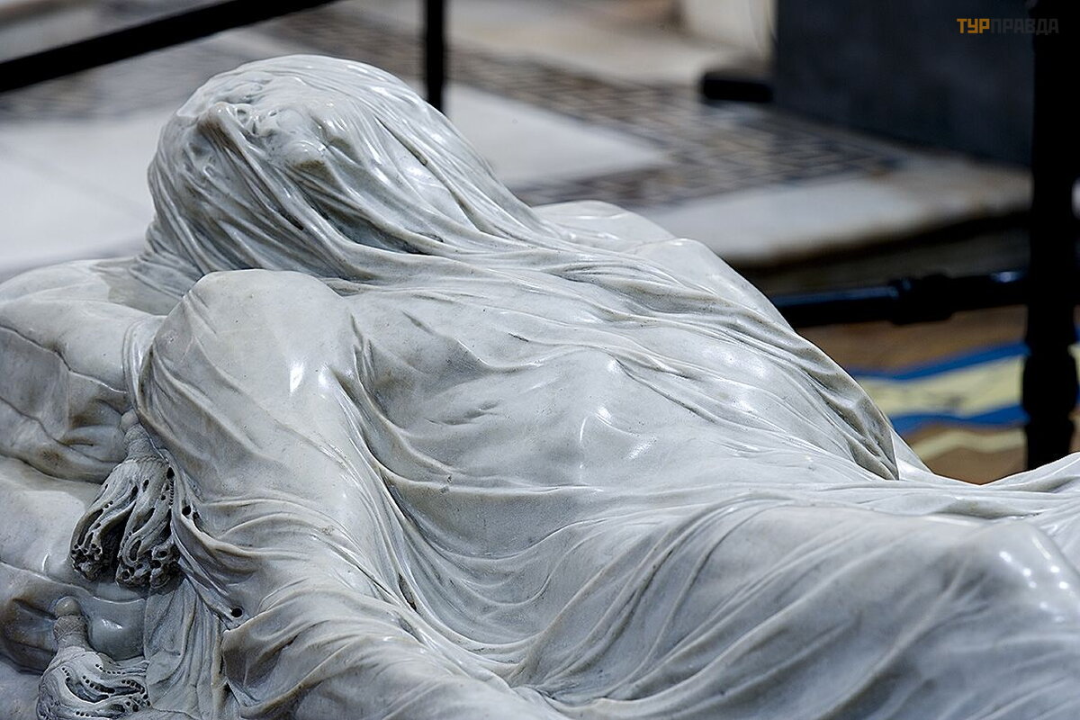 In the center of the chapel there is a marble sculpture "Christ under the Shroud", created by the master Giuseppe Sanmartino (1753), covering the body of Christ with the fabric of the shroud. Executed with the highest craftsmanship, it seems transparent and light, although it is made of marble. The sculpture "Christ under the Shroud" is a recognized masterpiece of Baroque art, delighting many visitors. Even the great Antonio Canova said that he was ready to give ten years of his life to become the author of this work.