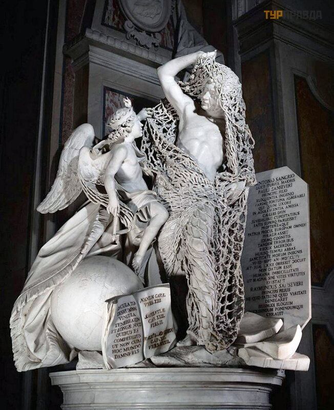 An even more complex allegory is the monument to Prince Raimondo's father, Antonio de Sangro. The Italian name of this monument, Disinganno, is translated into Russian as "Getting rid of the spell. " Antonio de Sangro, after the death of his young wife, led a disorderly and even reckless life, leaving his son Raimondo to be raised by his grandfather. Realizing the senselessness of such a waste of life, Antonio repented and subsequently took the priesthood.