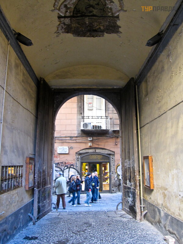 Then we went along the familiar road along the pedestrian via Chiaia. On the way, we turned to look at the Palazzo Chelamare - one of the most beautiful Renaissance palaces in the city, built in the 16th century. Then a chapel was added, the author of the project was the famous Italian architect Ferdinando Fugu.