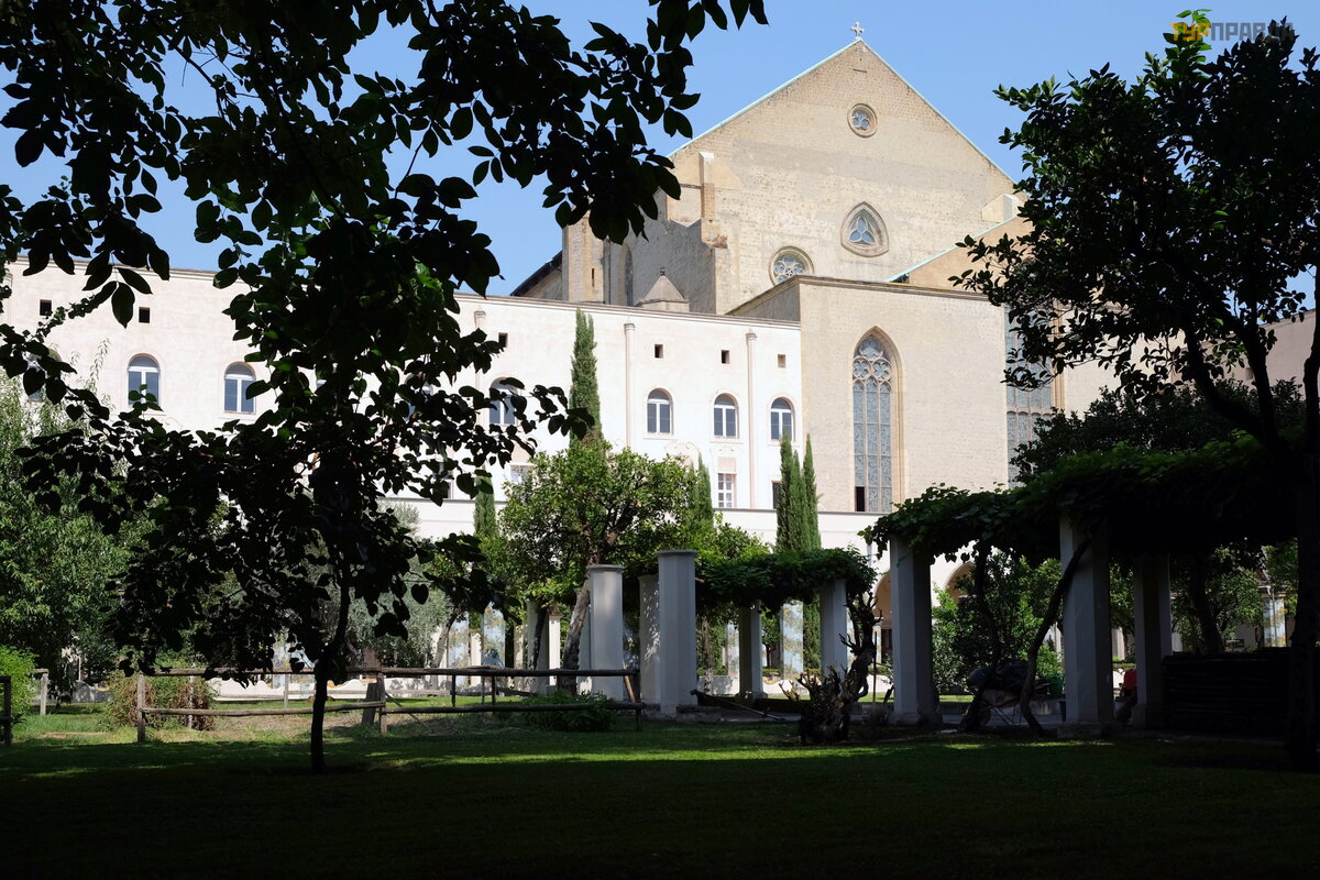 We approach the huge monastery complex Santa Chiara (Santa Chiara), dedicated to Saint Clare of Assisi, founder of the Clarissinian order.