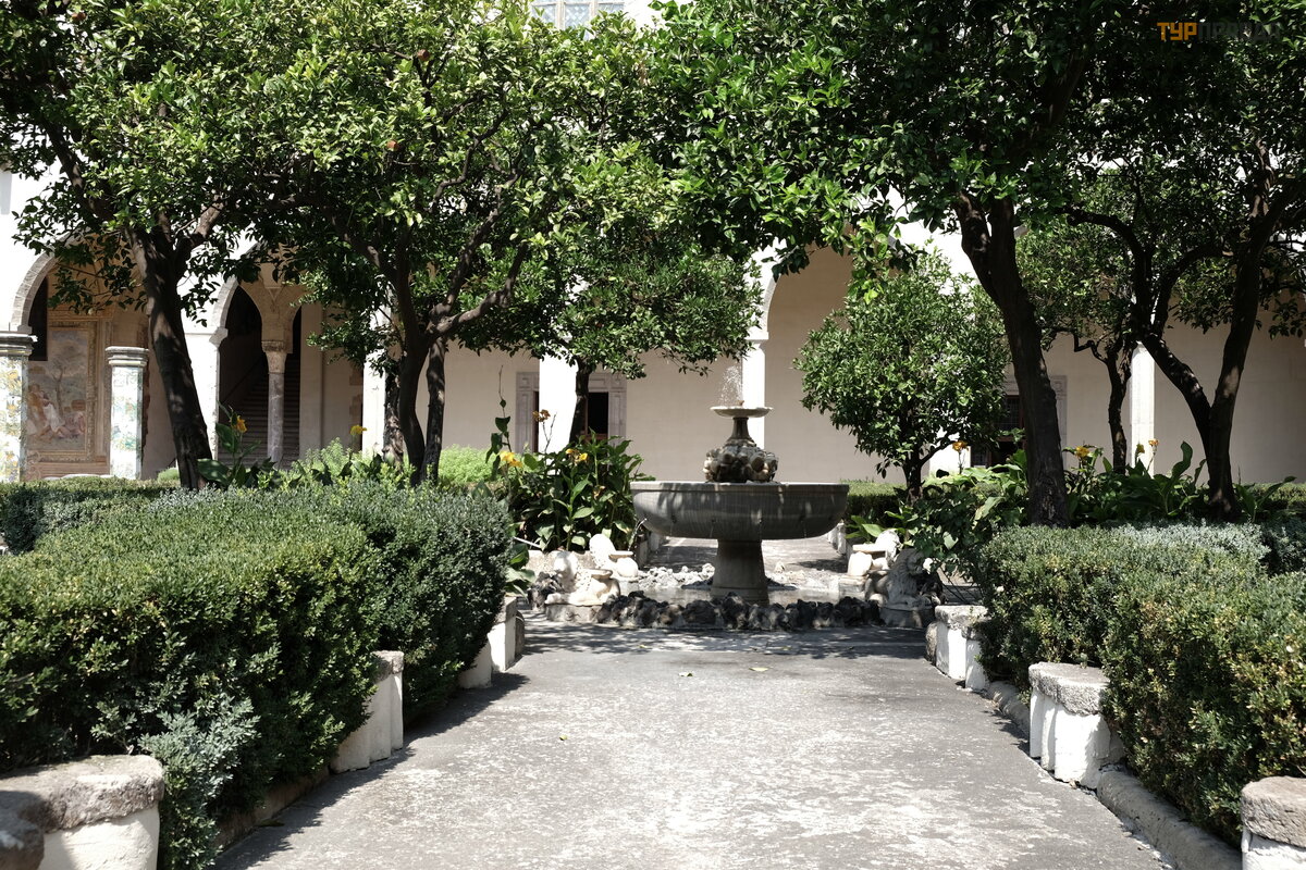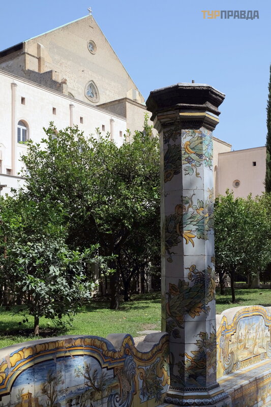 Two fountains from the 14th century were moved to the garden, one of which is decorated with four sculptures of lions. The brothers Donato and Giuseppe Massa decorated the columns along the alleys with majolica with floral ornaments. The tiles decorating the benches, set in the shade of orange and lemon trees, were painted with genre scenes from ancient mythology and the rural life of the Neapolitans, landscapes, scenes from the everyday life of the monastery. Entrance to the cloister is paid, 6 euros.
